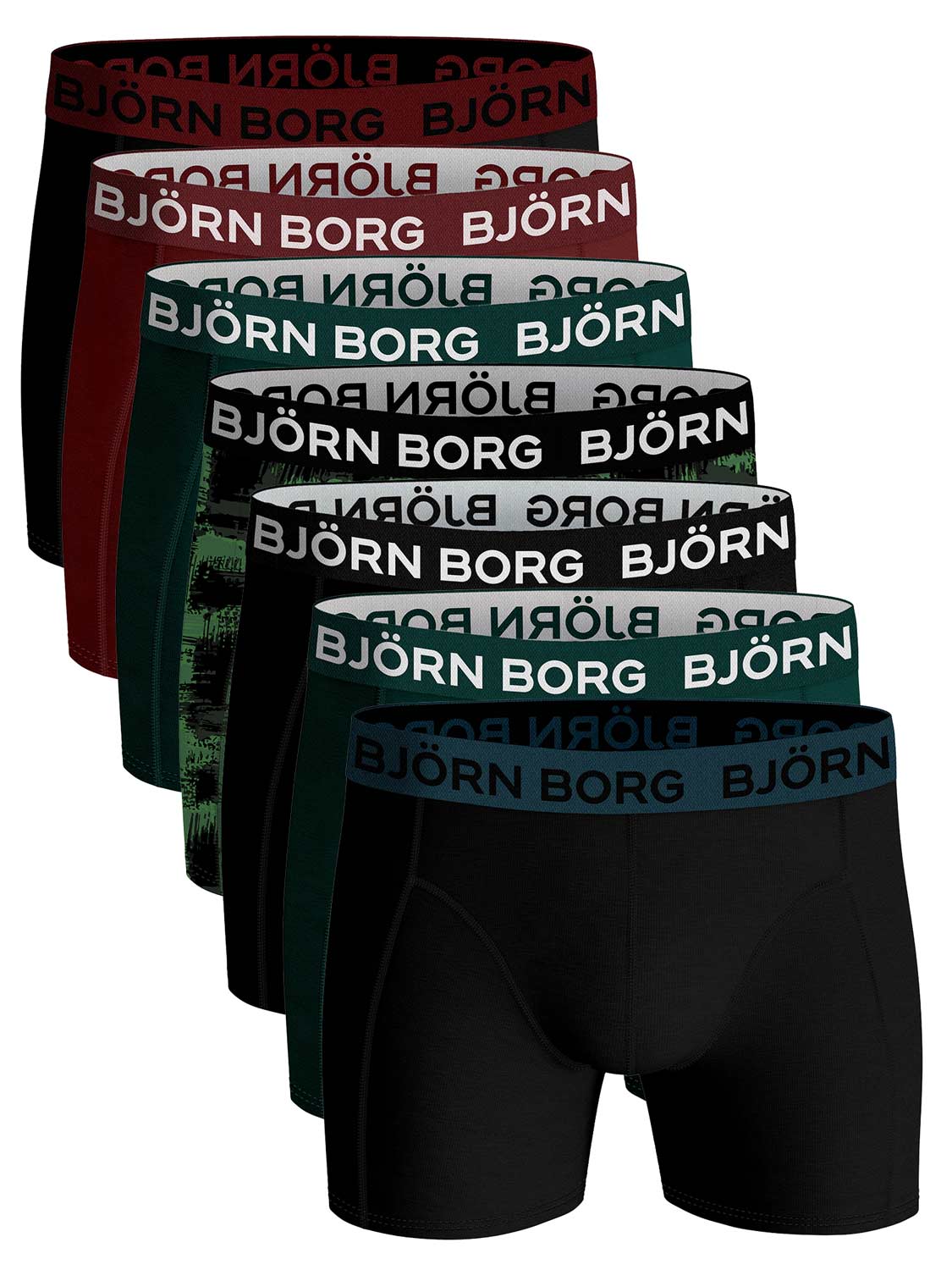 Du er dækket hver dag i ugen med dette 7-dages multipack fra Essential Cotton-serien. Essential boxershortsene er lavet af lettere bomuld end shortsene fra Premium Cotton (Core)-serien, men er yderst velegnede til daglig brug, hvor du ikke stiller for høje krav til dine boxershorts. Boxershortsene fås i forskellige farvekombinationer og har en elastisk linning med Björn Borg-logoet.