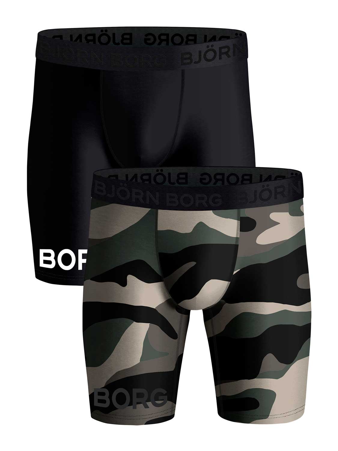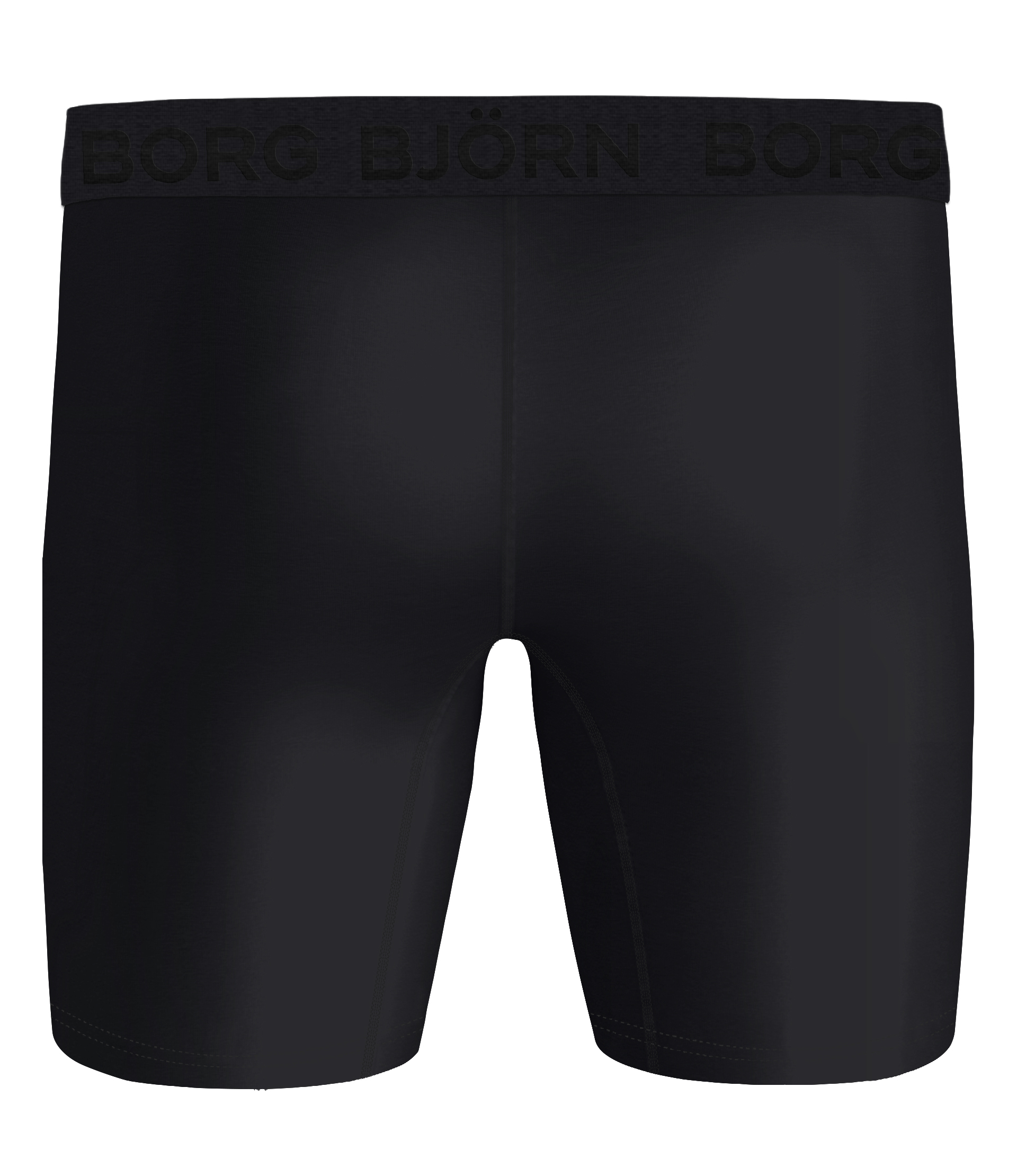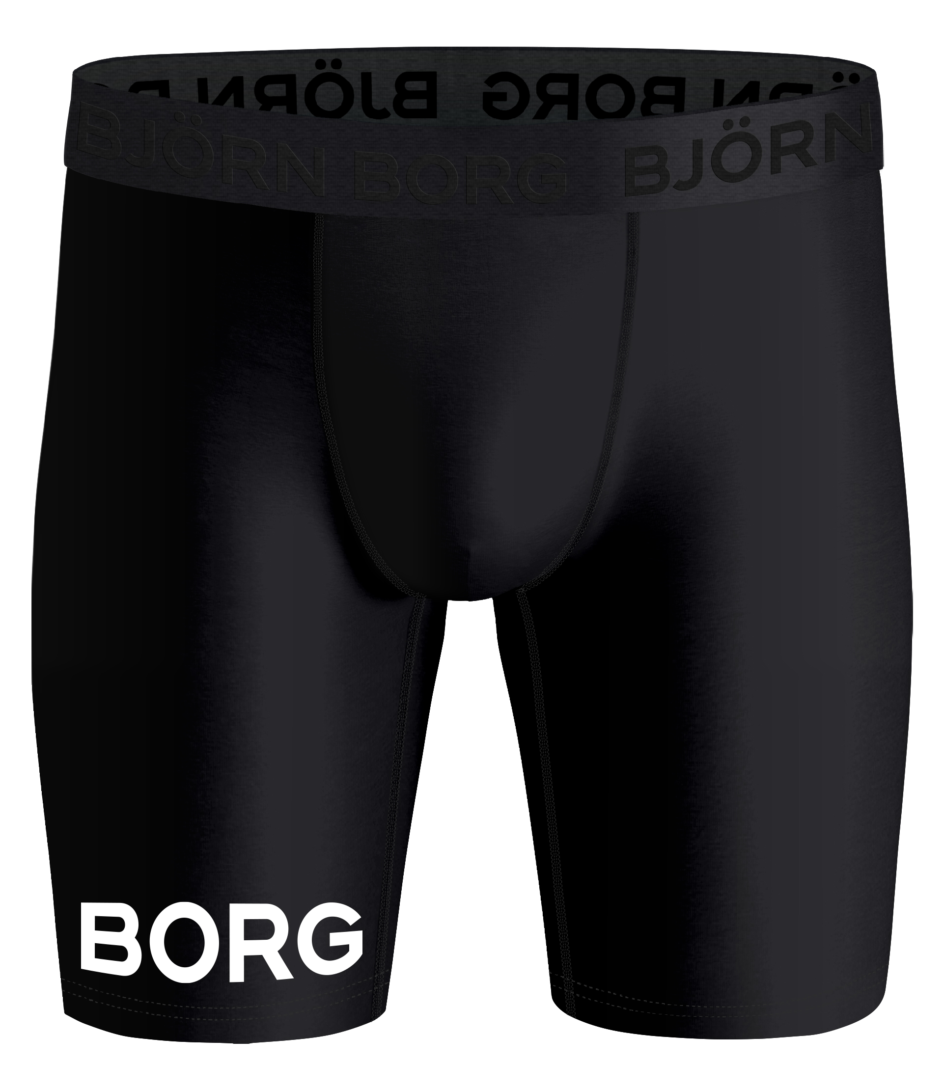 To Long Performance Shorts fra Björn Borg, designet med længere ben specielt til den atletiske mand. De lange boxershorts er lavet af fugtafvisende mikrofiber, baseret på polyester, som holder dig komfortabel under din træning eller cykeltur. Boxerne har flade sømme for at forhindre gnidning.