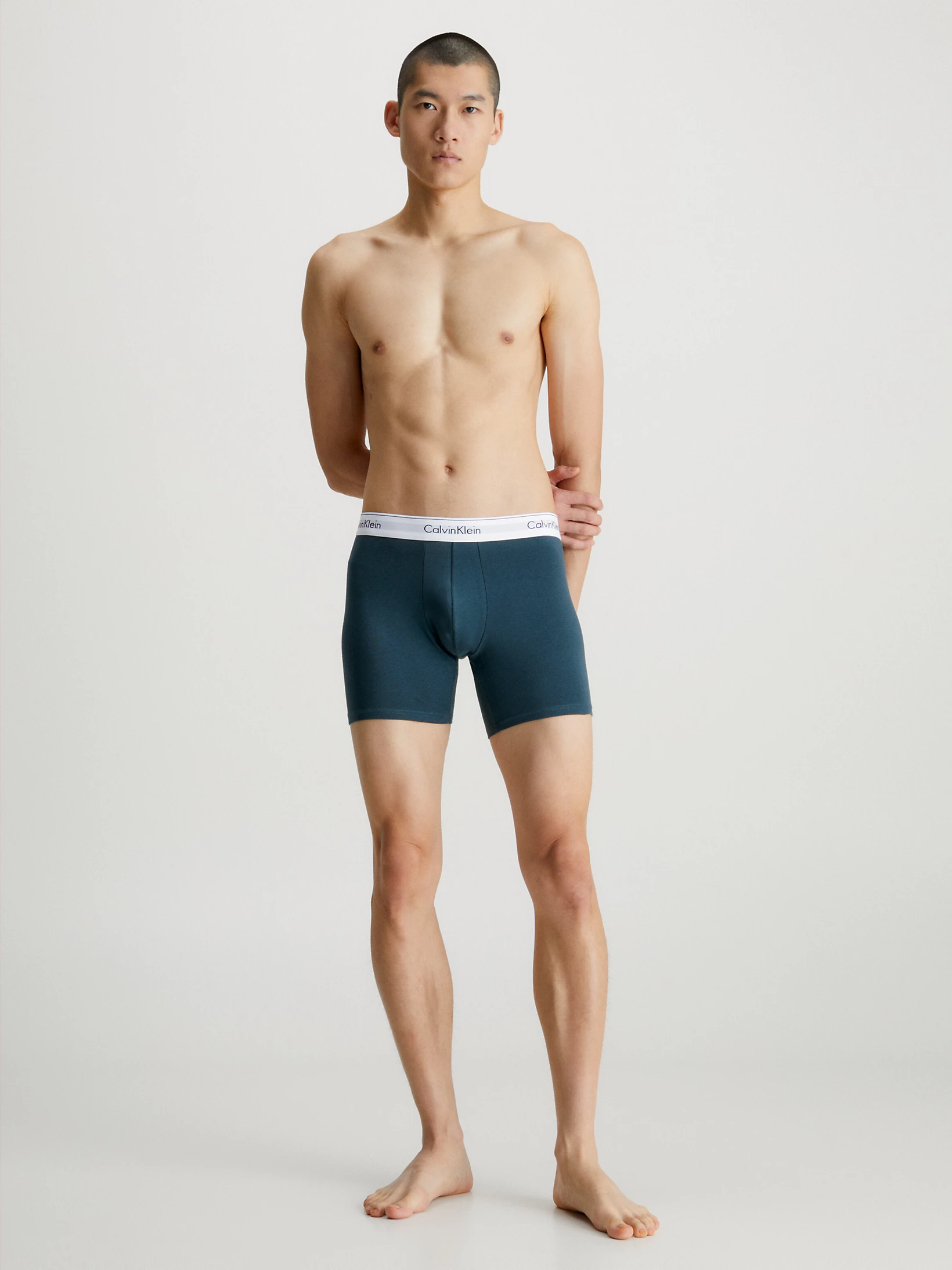 Leder du efter en lang boxer fra Calvin Klein? Så er Modern Cotton boxer briefs i denne værdipakke perfekte for dig. Med det specielle hvide modern cotton taljebånd har disse boxers et sporty look. Boxershortsene er lavet af blød bomuld med nok stræk til at sikre den bedste komfort og pasform.