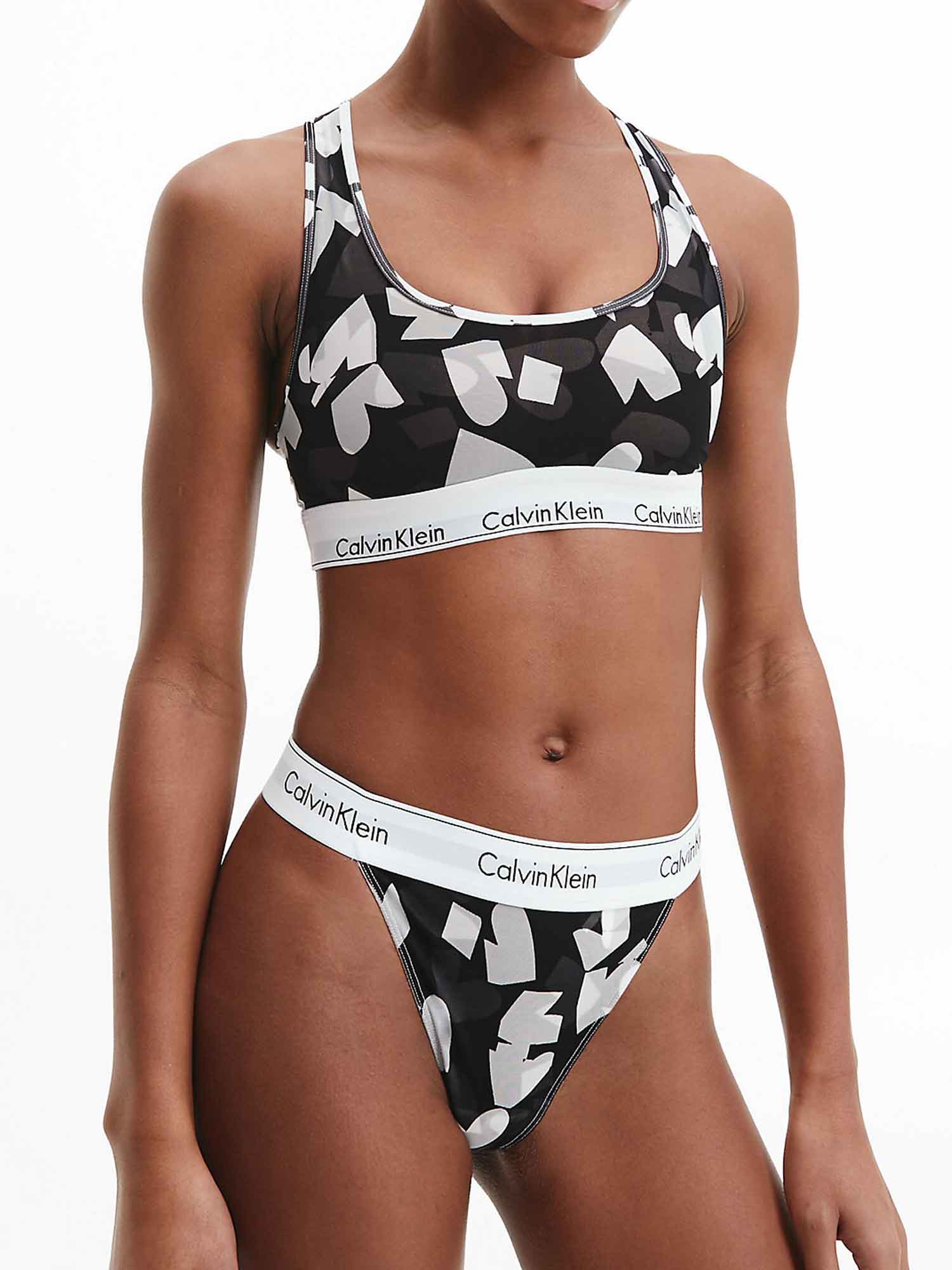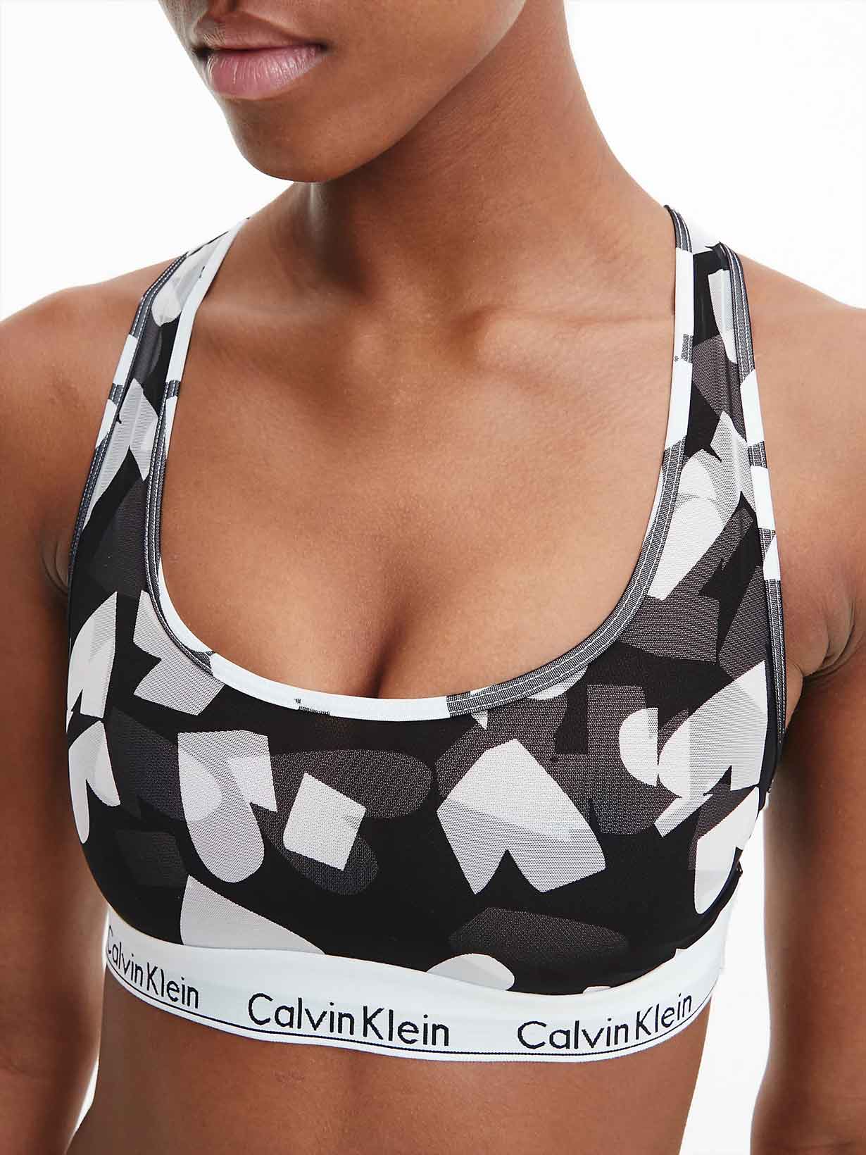 Nyd denne dame bralette fra Calvin Klein. Lavet af bomuld, modal og elastan, ånder denne bralette perfekt og bevarer sin form i lang tid, mens modal gør, at denne bralette føles blød mod huden. Med det karakteristiske Calvin Klein-logo rundt om den nederste del af toppen, holder denne elastiske rem braletten sikkert på plads. Fås i en slående sort, hvid og grå grafisk print. Kombinér denne bralette med en matchende underdel for et komplet sæt.