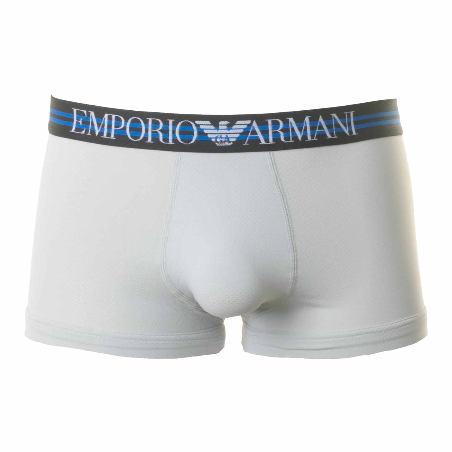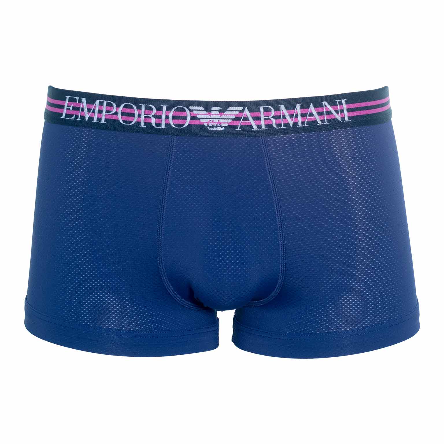 Den ikoniske ørne-taljebånd fremhæver denne stilfulde mesh-mikrofiber trunk. Denne kollektion kombinerer Emporio Armanis arvelook med en satineffekt skabt af det mikrofiber elastiske bånd. Mesh-materialet giver denne trunk fremragende åndbarhed samt et sporty look. Polyamid-materialet sikrer fantastisk formstabilitet og holdbarhed, hvilket betyder, at denne trunk vil passe perfekt i lang tid. Fås i solid lilla, sort eller grå med en markant accentfarve i taljebåndet.