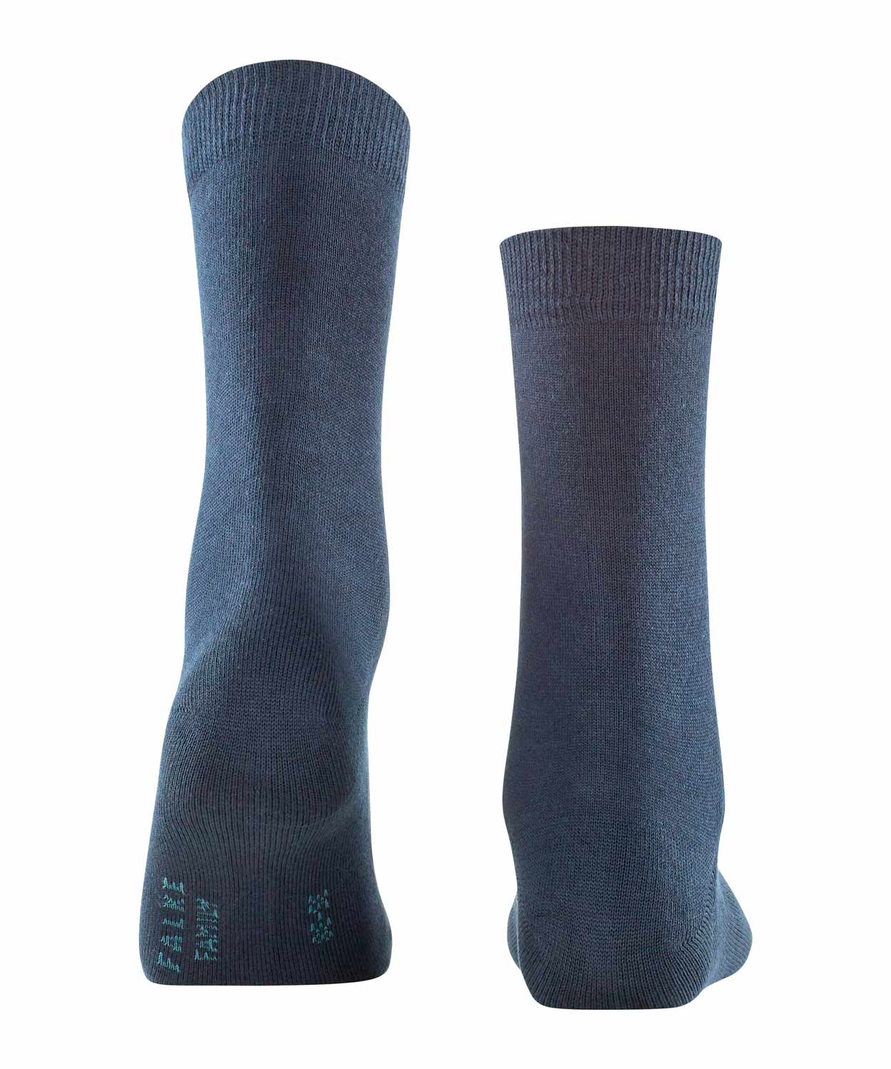 Falke Family-sokken er lavet af højkvalitets bomuld, som er bæredygtigt produceret. Stoffet føles blødt mod huden, hvilket gør det velegnet til følsomme fødder. Family-sokken har forstærkede belastningszoner, der forlænger sokkens levetid. Denne damesok fås i forskellige farver.