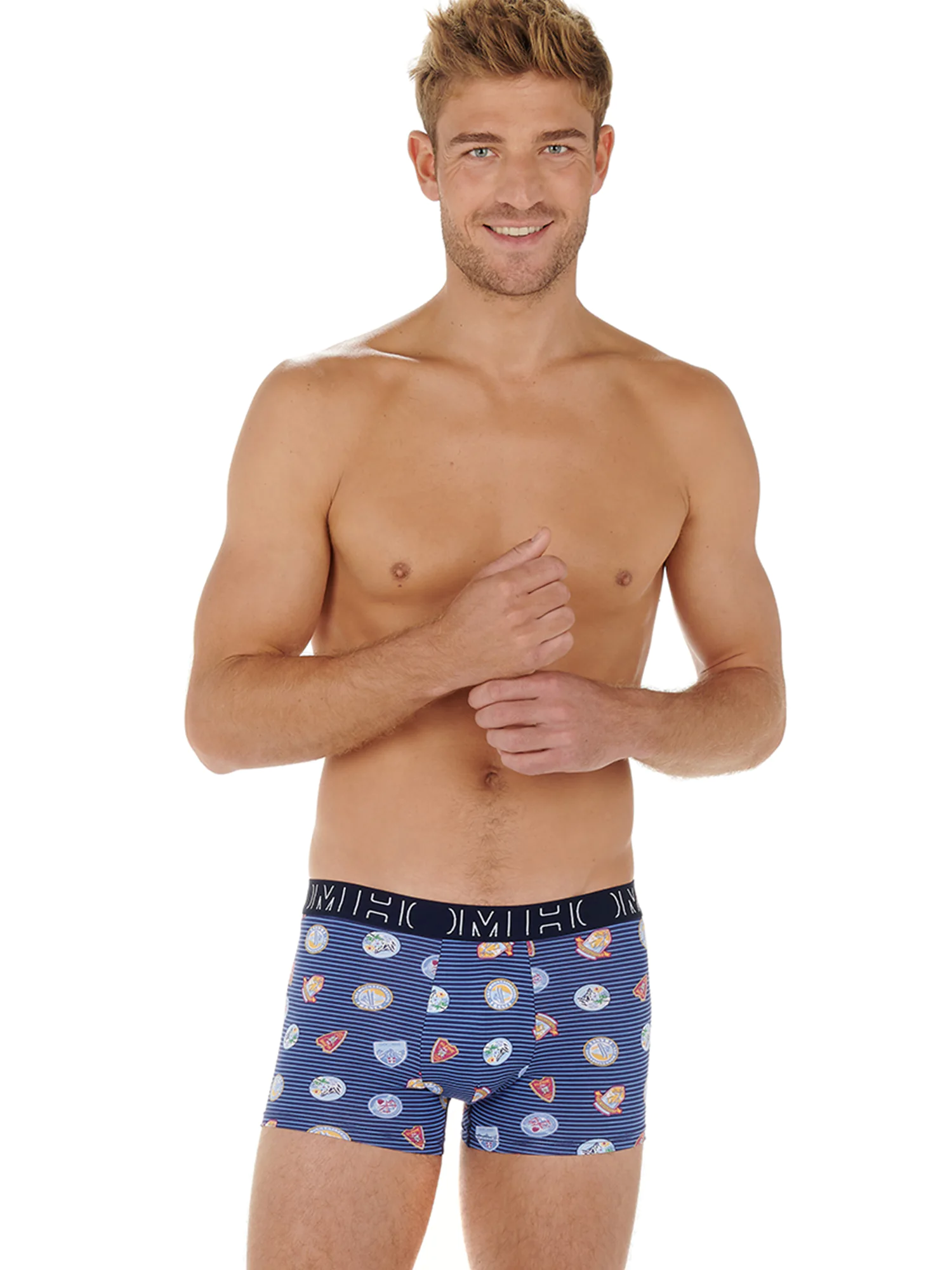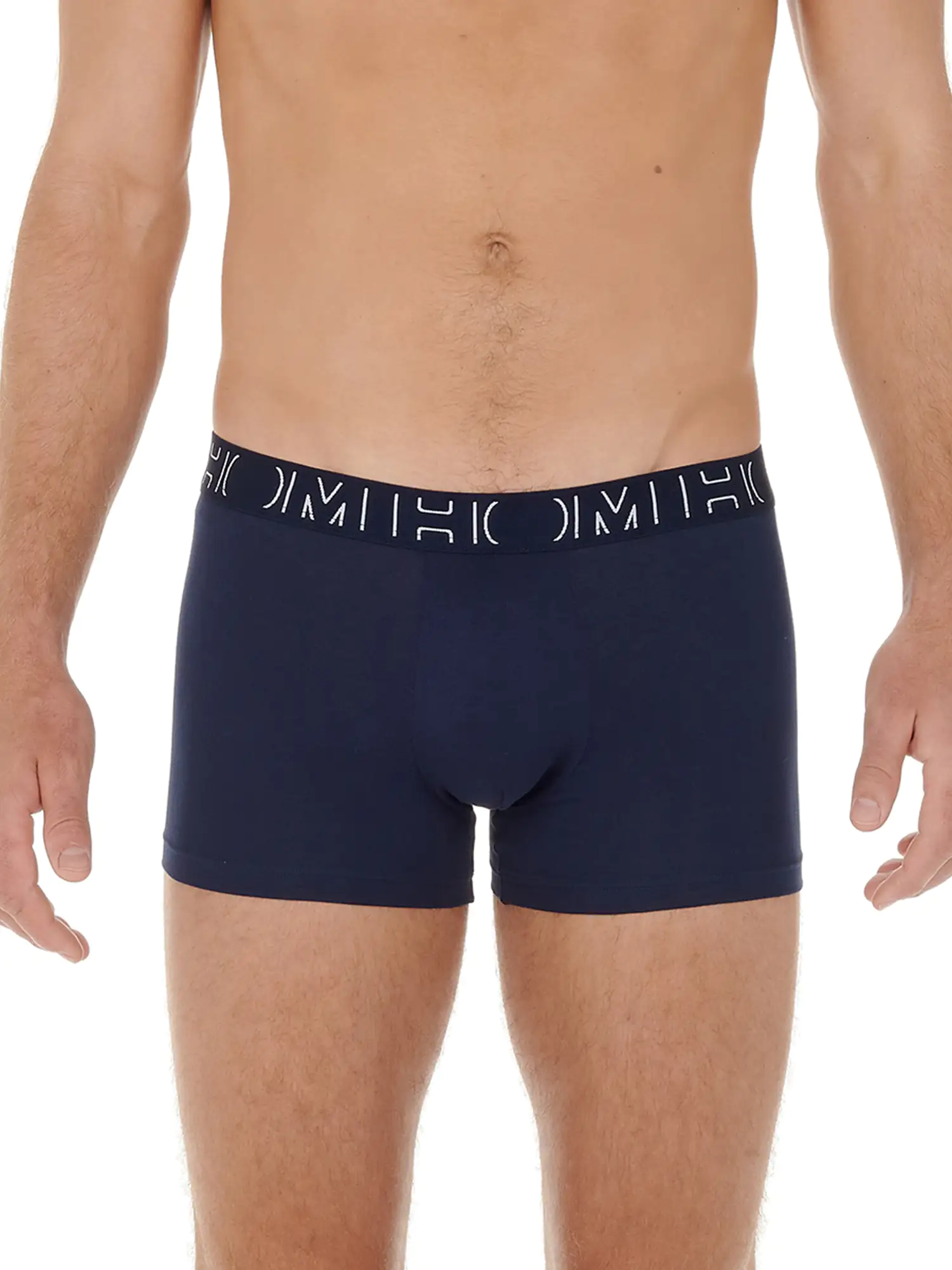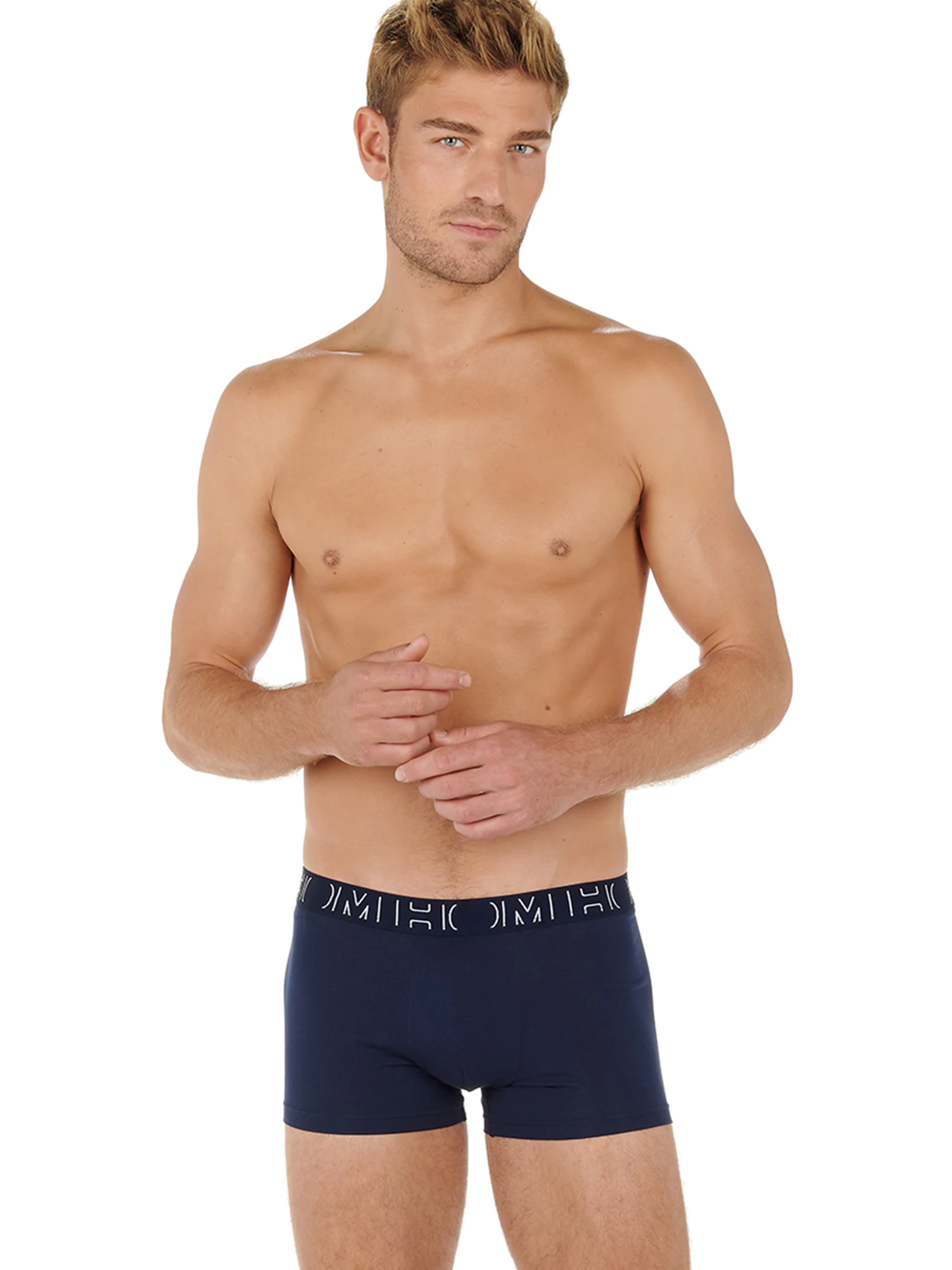 2p Boxer Briefs - Alf er en overkommelig 2-pak. Boxerne er en del af HOM BOXERLINES-serien og er lavet af kæmmet strækbomuld. Disse herreboxere er velegnede til daglig brug og har en pung foran for ekstra støtte og komfort. BOXERLINES-serien er lavet af en lettere kvalitet bomuld end enkeltpakkerne. Alf inkluderer en boxer i ensfarvet marineblå og en boxer med et print med vintersports-emblemer.