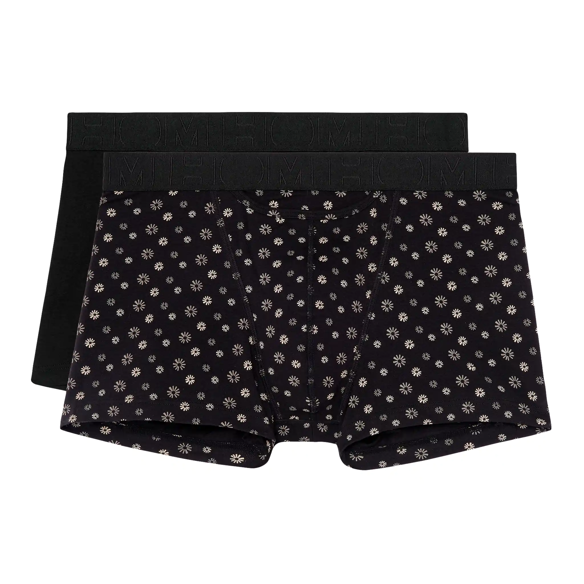 2 Boxer Briefs i en prisvenlig 2-pak med den horisontale gylp, som HOM er kendt for, hvilket giver ekstra bekvemmelighed og komfort. Disse HO1 boxers er en del af Boxerlines-serien og er lavet af kæmmet strækbomuld. Denne multipakke inkluderer en boxer i sort og en boxer med et subtilt blomsterprint i grå på en sort baggrund. Mændenes boxers er velegnede til daglig brug og er designet med en pung foran for ekstra støtte og komfort. Boxerlines-serien er lavet af en lettere kvalitet bomuld end enkeltpakkerne.