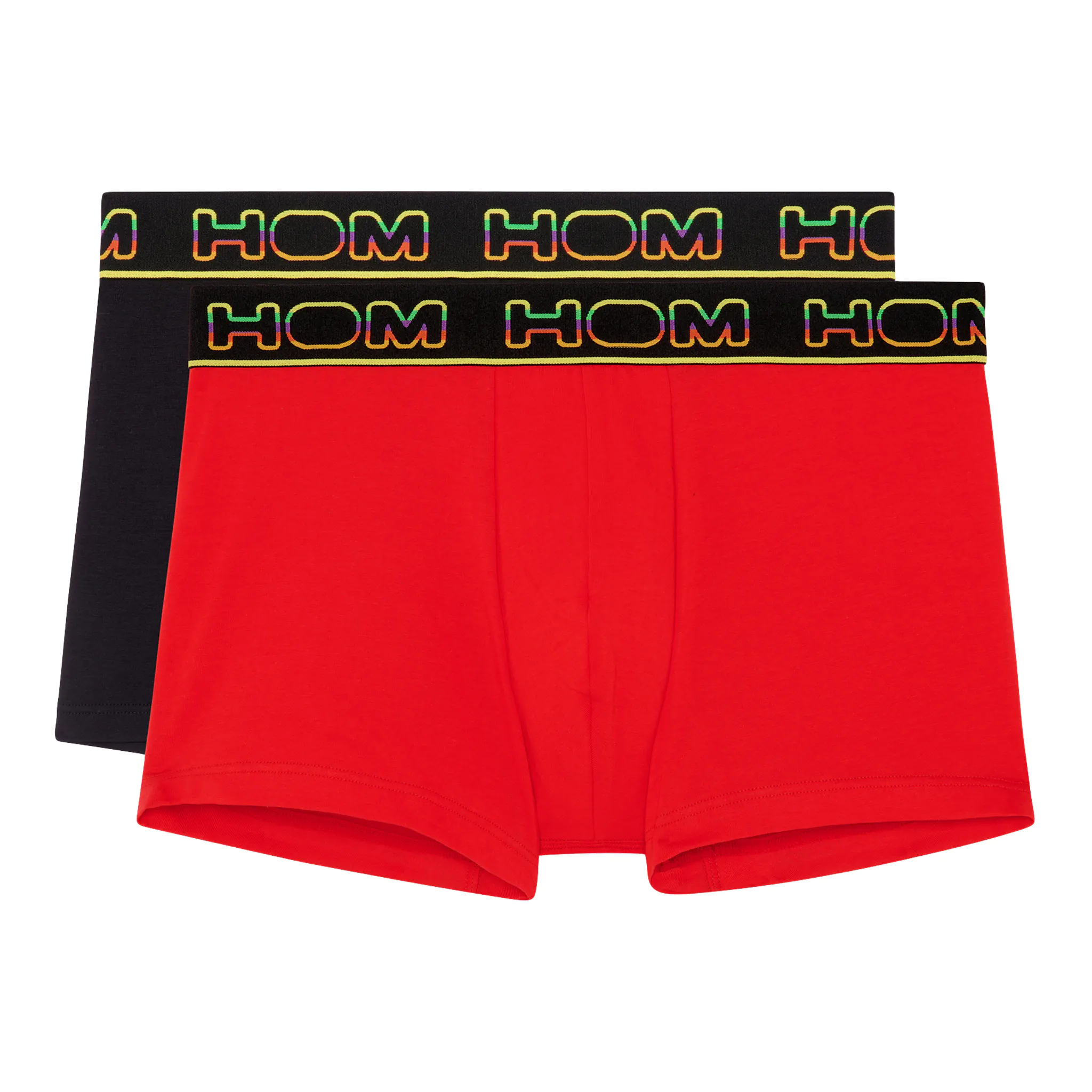 The 2p Boxer Briefs - Ivano er en prisvenlig 2-pak. Boxershortsene er en del af HOM BOXERLINES-serien og er lavet af kæmmet strækkbomuld. Disse herreboxershorts er velegnede til daglig brug og har en pung foran for ekstra støtte og komfort. BOXERLINES-serien er lavet af en lettere kvalitet bomuld end enkeltpakkerne. Ivano boxershortsene kommer i sort og rød med en sporty farverig elastisk taljebånd.