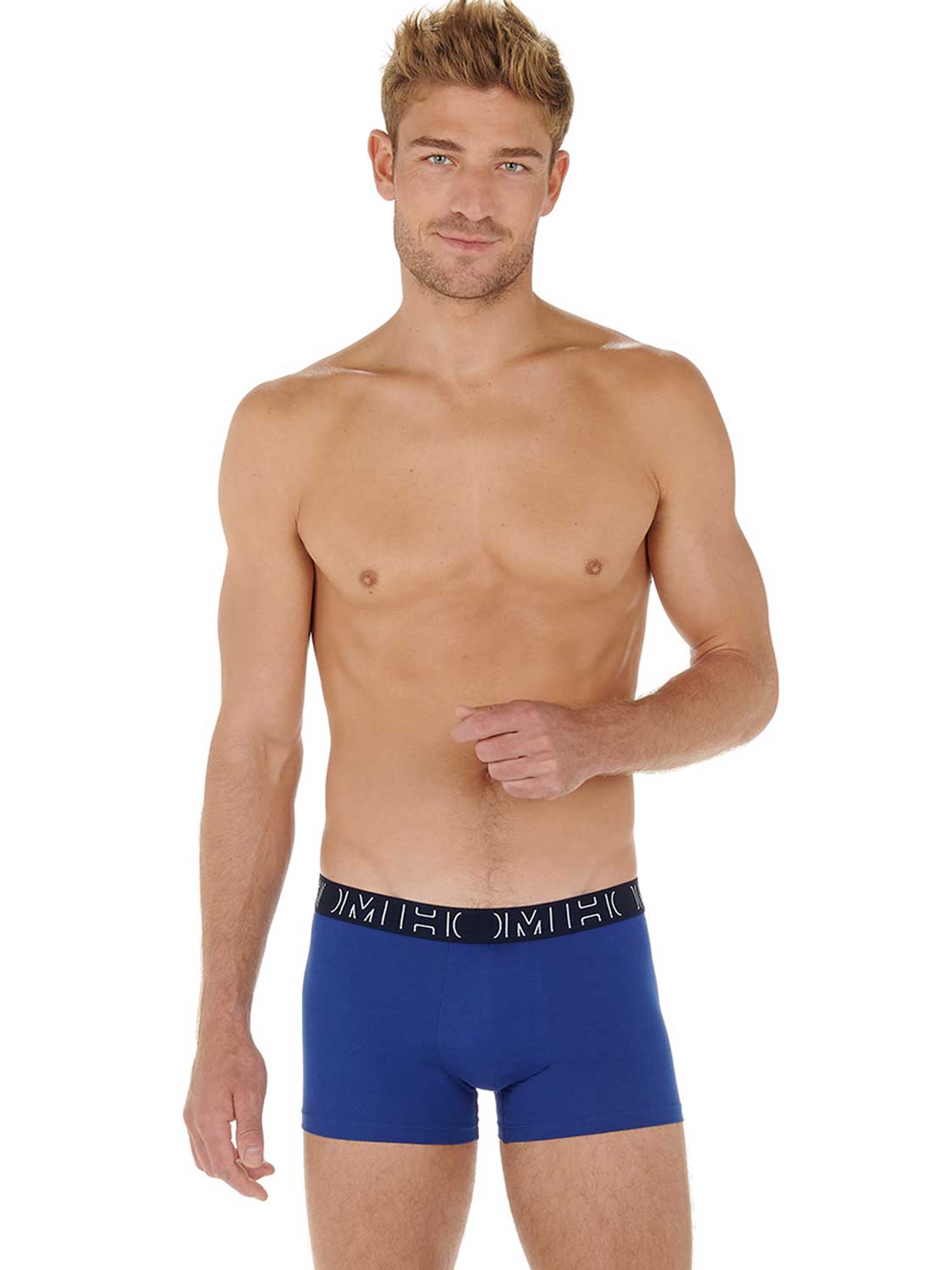 The 3p Boxer Briefs - Rocky er en prisvenlig 3-pak. Boxershortsene er en del af HOM BOXERLINES-serien og er lavet af kæmmet strækbomuld. Disse herreboxershorts er velegnede til daglig brug og har en pung foran for ekstra støtte og komfort. BOXERLINES-serien er lavet af en lettere kvalitet bomuld end enkeltpakkerne. Denne værdi pakke, tilgængelig i forskellige nuancer af blå, inkluderer 2 ensfarvede boxershorts og 1 med print.