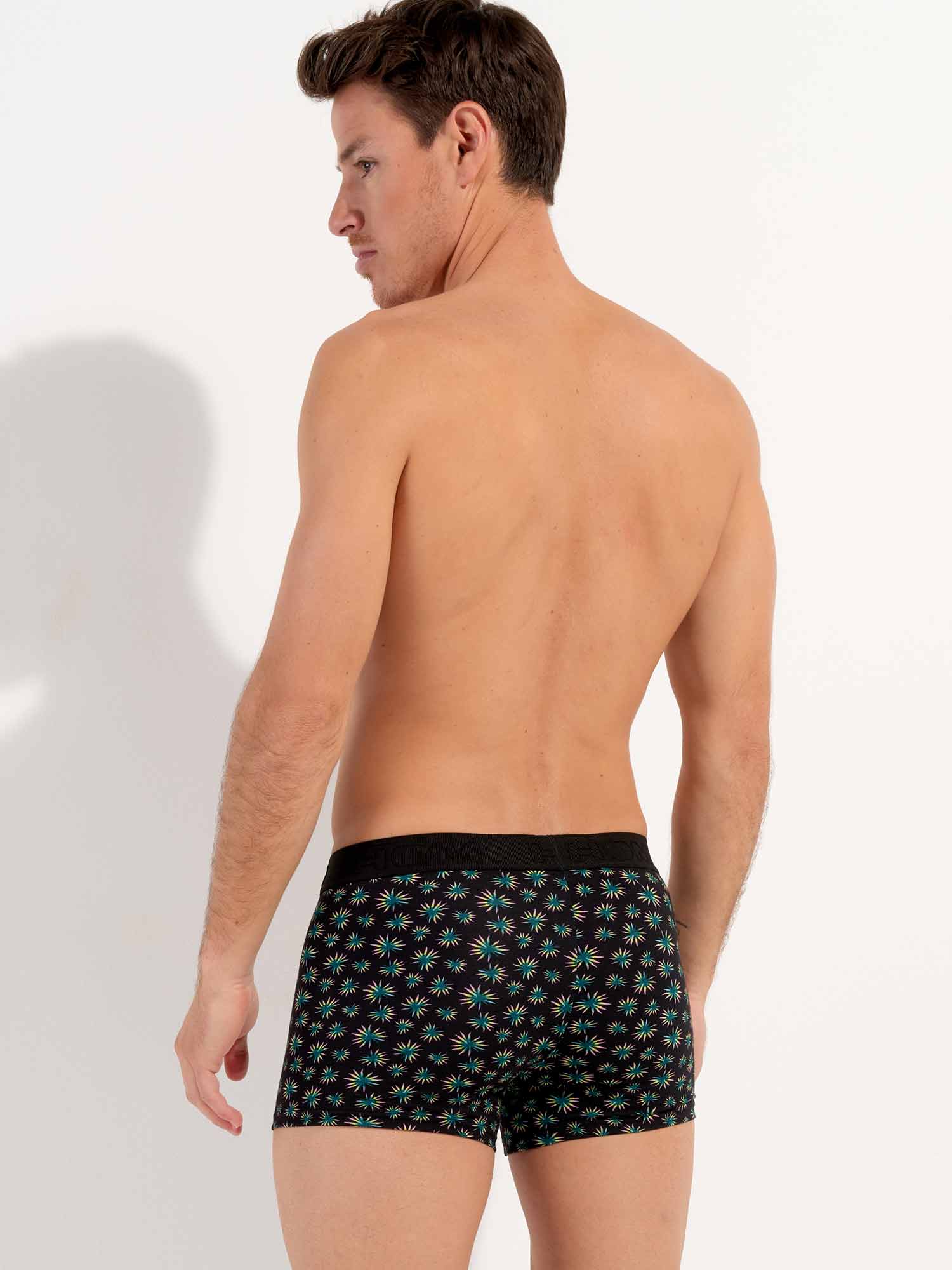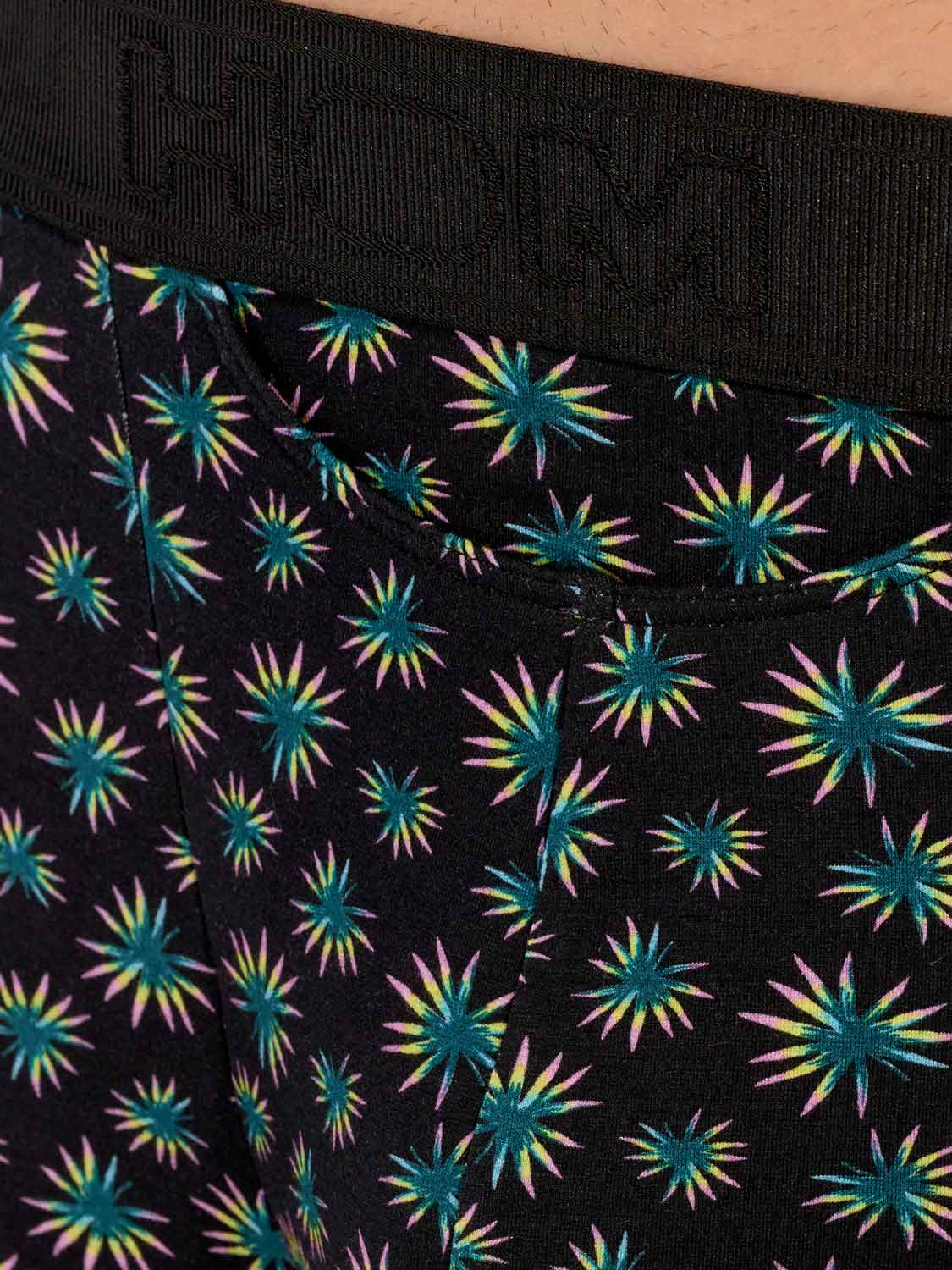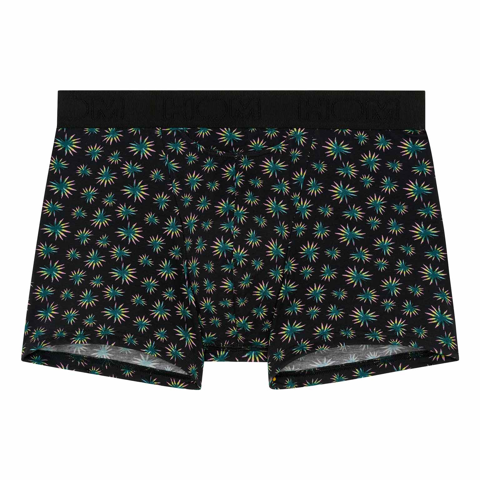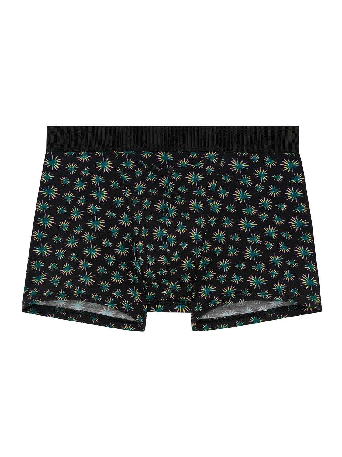 Dizzy - HO1 Boxer Briefs er lavet af bomuld-modal og har en 'horisontal åbning', HOM’s karakteristiske gylp for ekstra bekvemmelighed. Disse herreboxershorts har et abstrakt botanisk mikroprint med grønne, gule og lyserøde palmeblade på en sort baggrund. Dizzy er designet med en elastisk ribkant med det broderede HOM-logo i tone-i-tone.