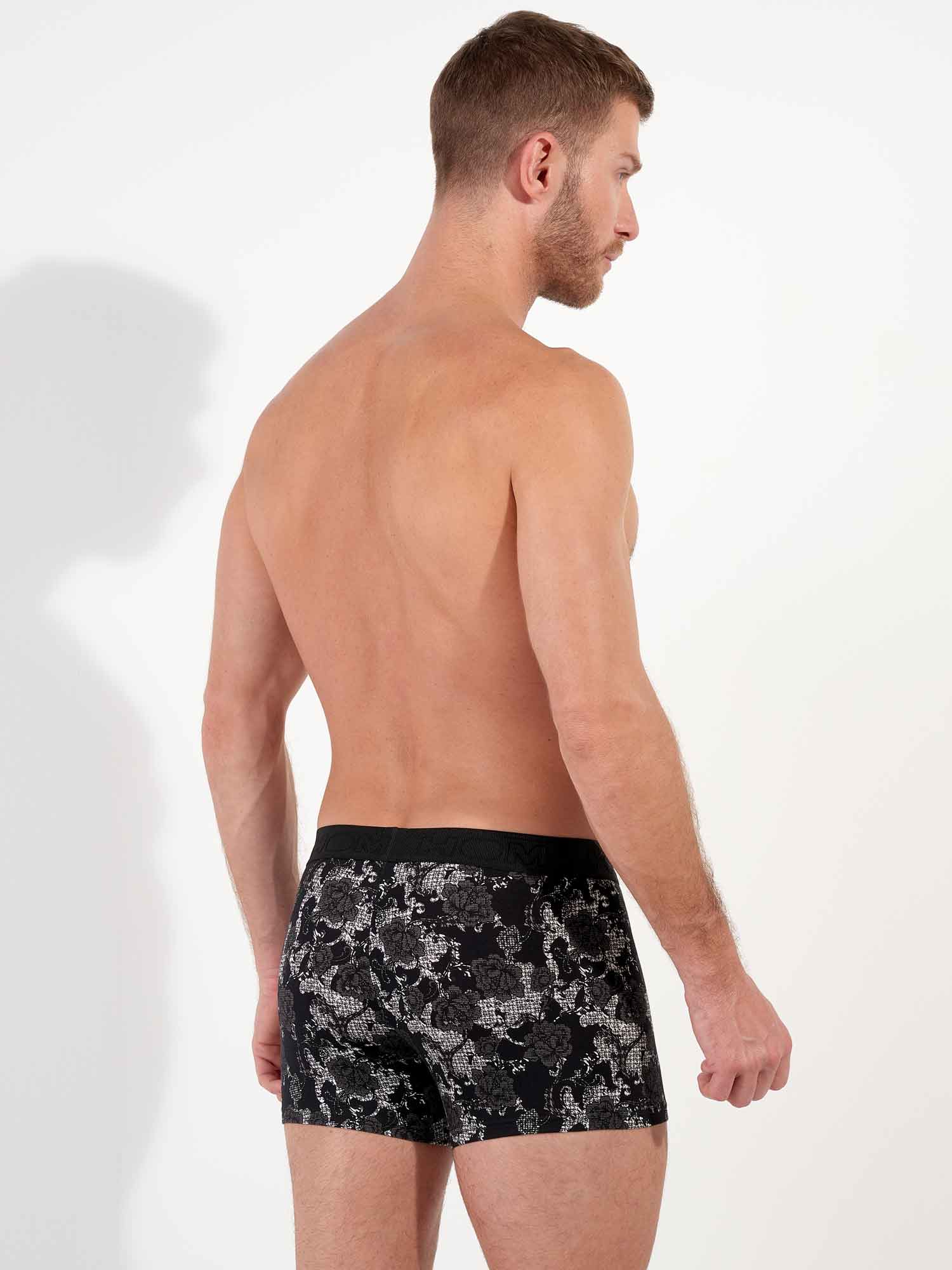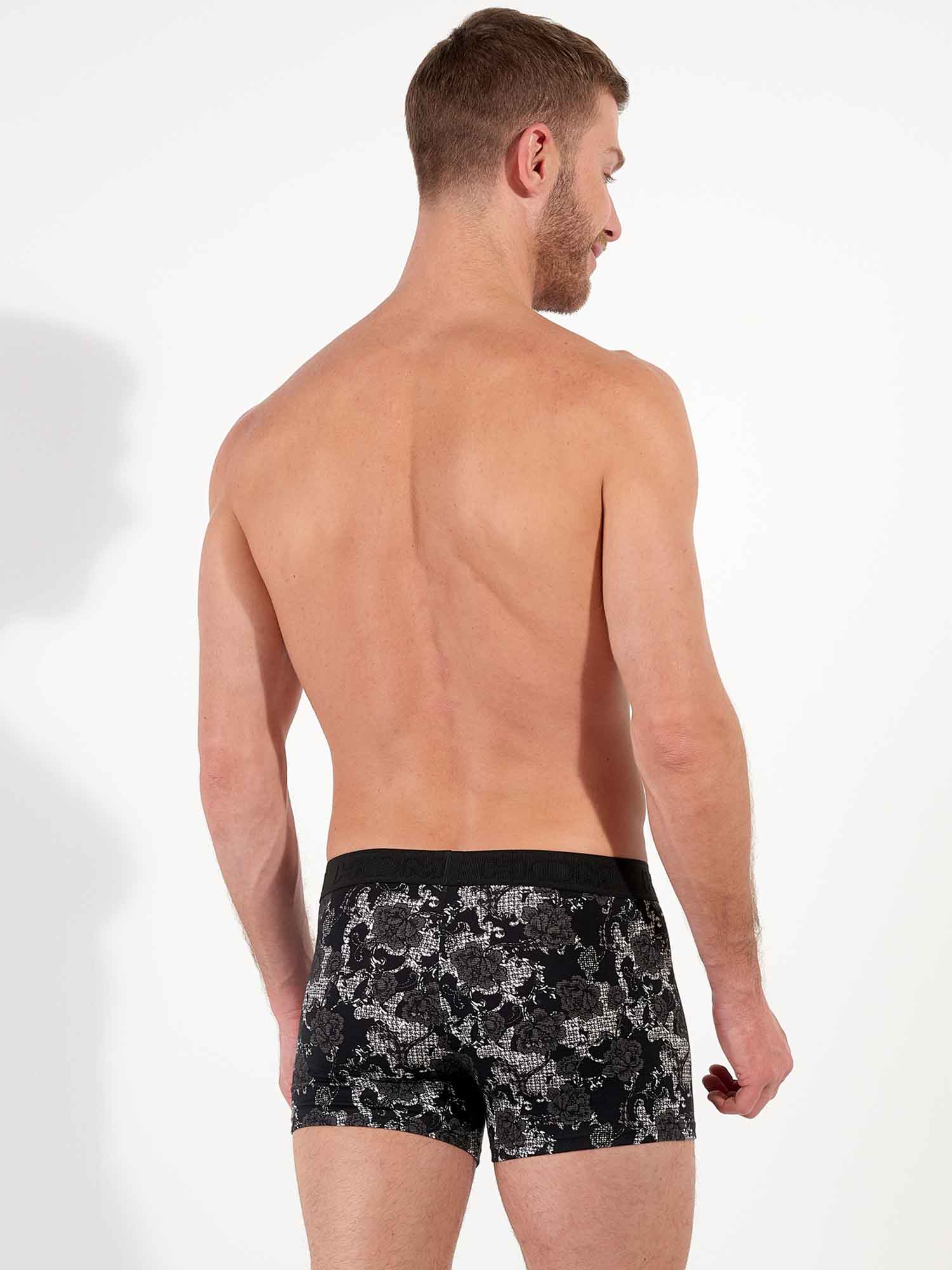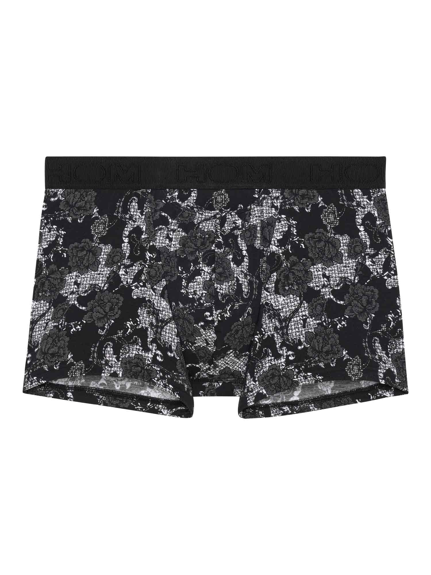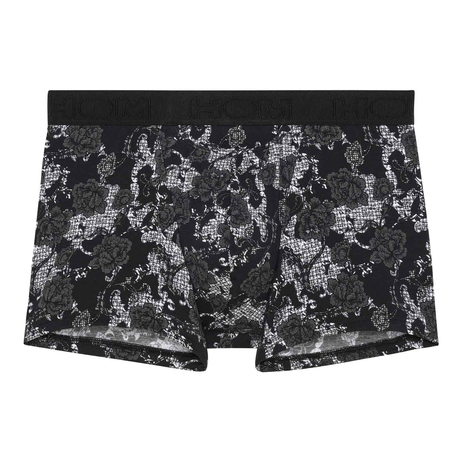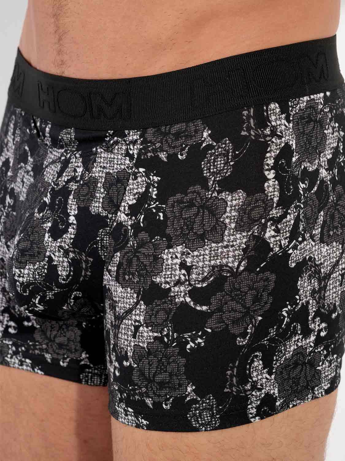Fairmont – boxer briefs HO1 forener tidløs elegance med moderne komfort. Den luksuriøse bomulds-modalblanding føles blød mod huden og er åndbar. Det vævede stof viser et diskret blomsterprint over et klassisk hanefjedsmønster i sort og grå. Den elastiske afslutning og frontforingen giver