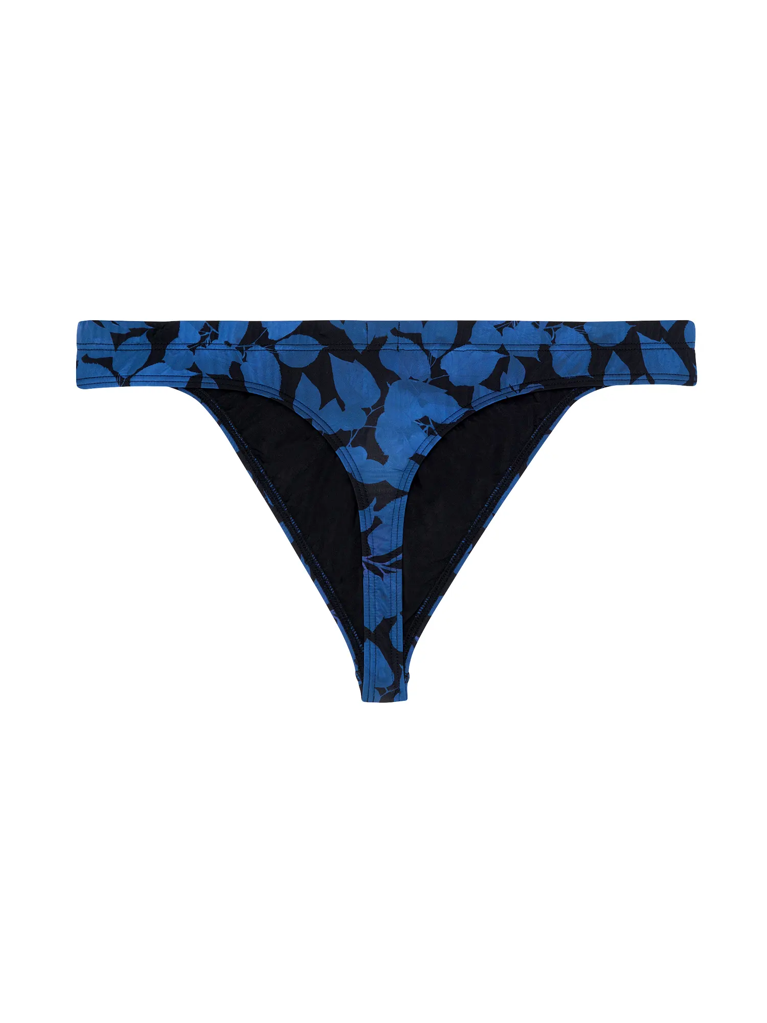 Quentin G-String er en del af HOM Temptation-serien. Med sit blå bladprint på en mørk baggrund frister denne G-string dig til det ultimative sensuelle look. G-stringen er lavet af en behagelig og blød mikrofiber, der passer perfekt til huden. Strengen har en smal taljebånd med en lille HOM-label broderet på venstre forside.