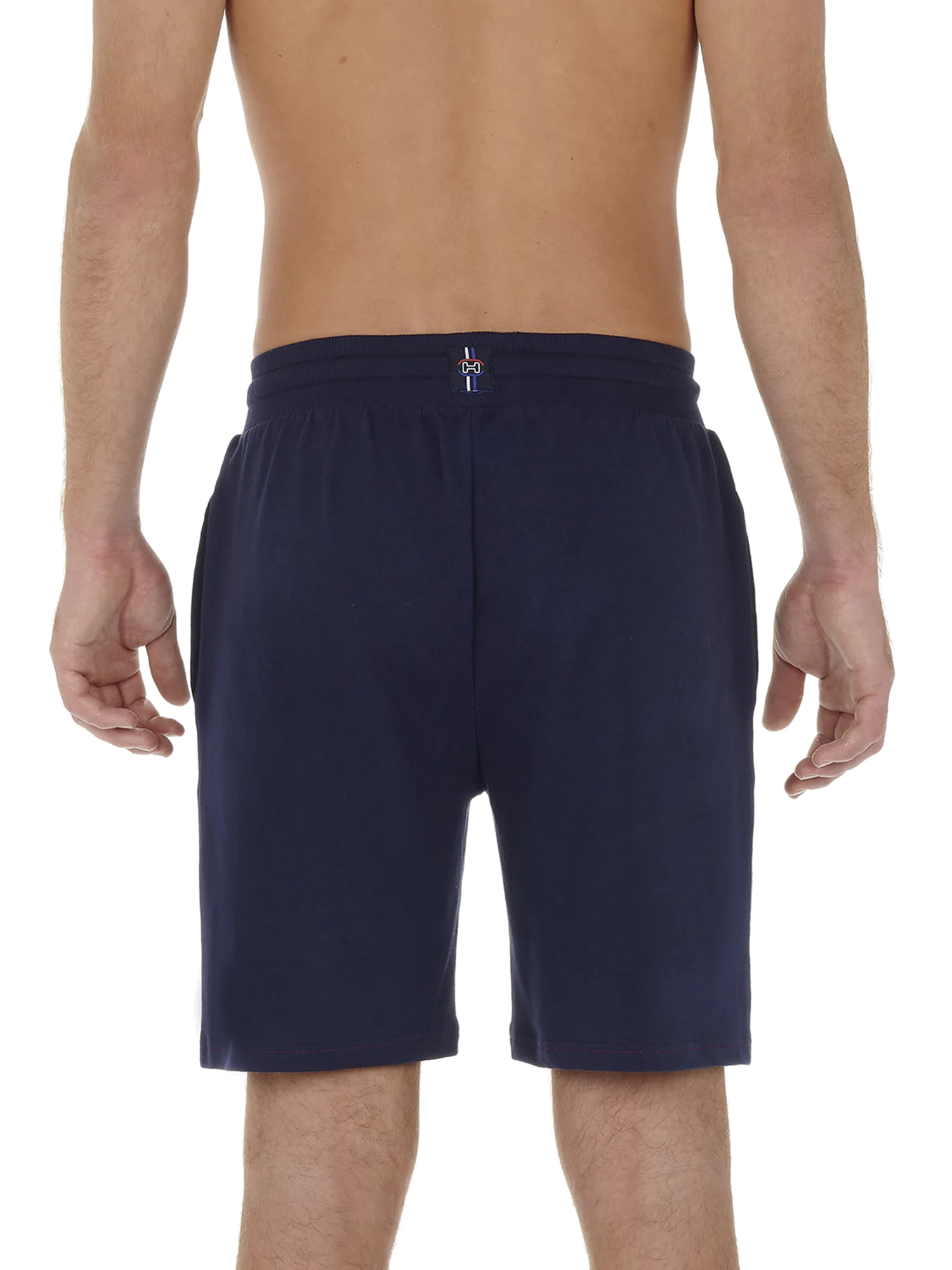 Sport Lounge-serien er den ideelle serie til afslapning, især efter en lang træning. Stoffet er lavet af en blød, behagelig og stilfuld fleece. Sport Lounge-serien består af shorts, jogger sweatpants og en sweater, som kan kombineres separat. Sport Lounge fås i meleret grå og marineblå. Fleecen er lavet af 100% bomuld, perfekt til manden der foretrækker naturlige stoffer. Derudover ånder bomuld godt og er let at rengøre. Disse shorts er udstyret med sidelommer på venstre og højre side og har en snor i taljen for at justere pasformen perfekt.