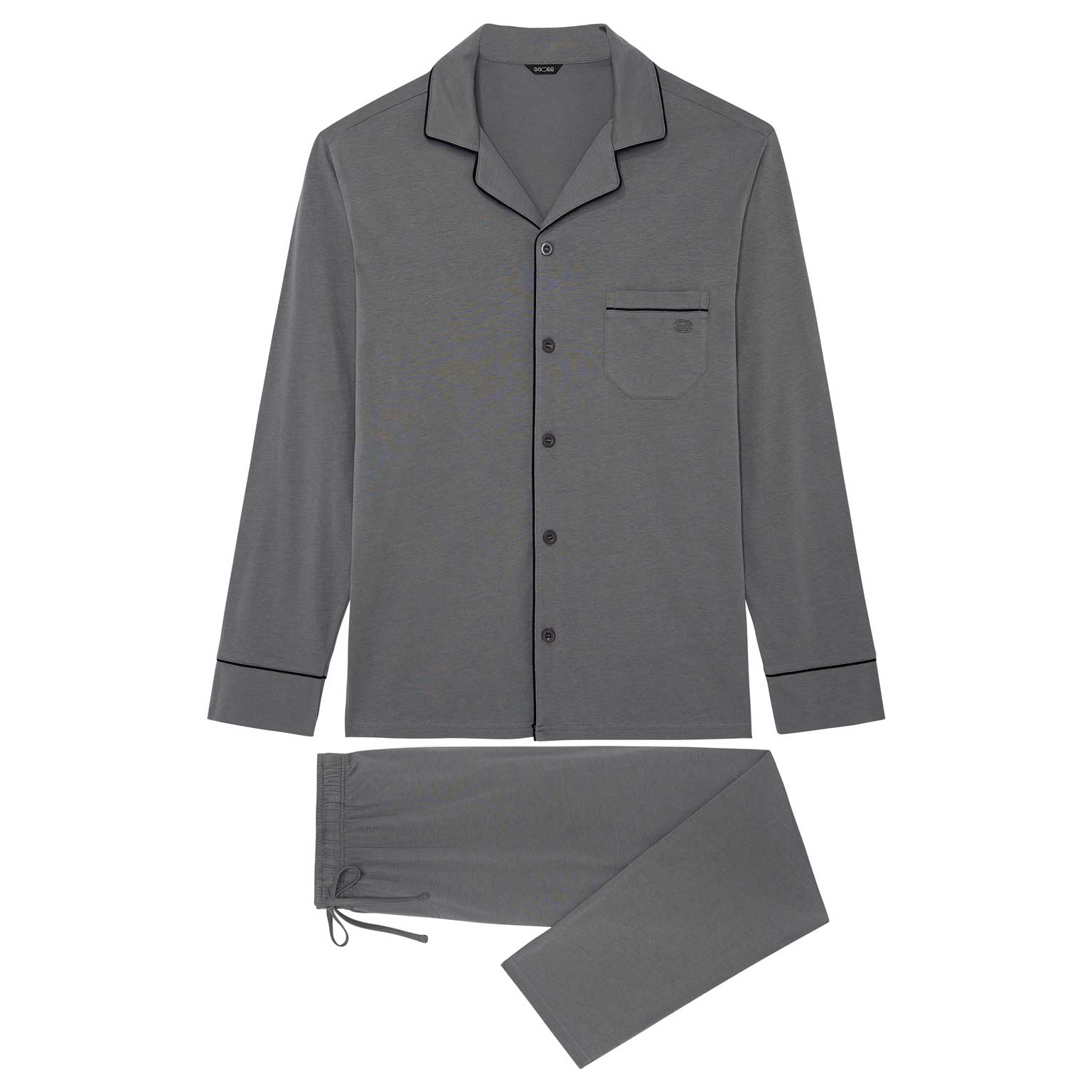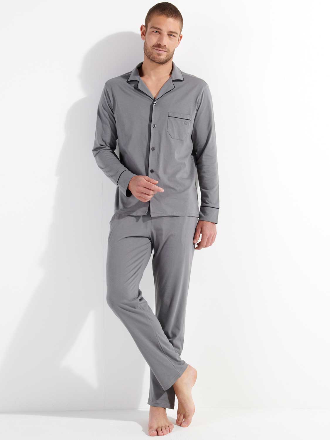 The Albert Long Sleepwear er en klassisk "button down" pyjamas med et moderne touch, lavet af 100% jerseykvalitet bomuld. Pyjamassen har en langærmet skjorte med en brystlomme på venstre side. De lange bukser kommer med en snor, så de kan justeres perfekt i størrelse.