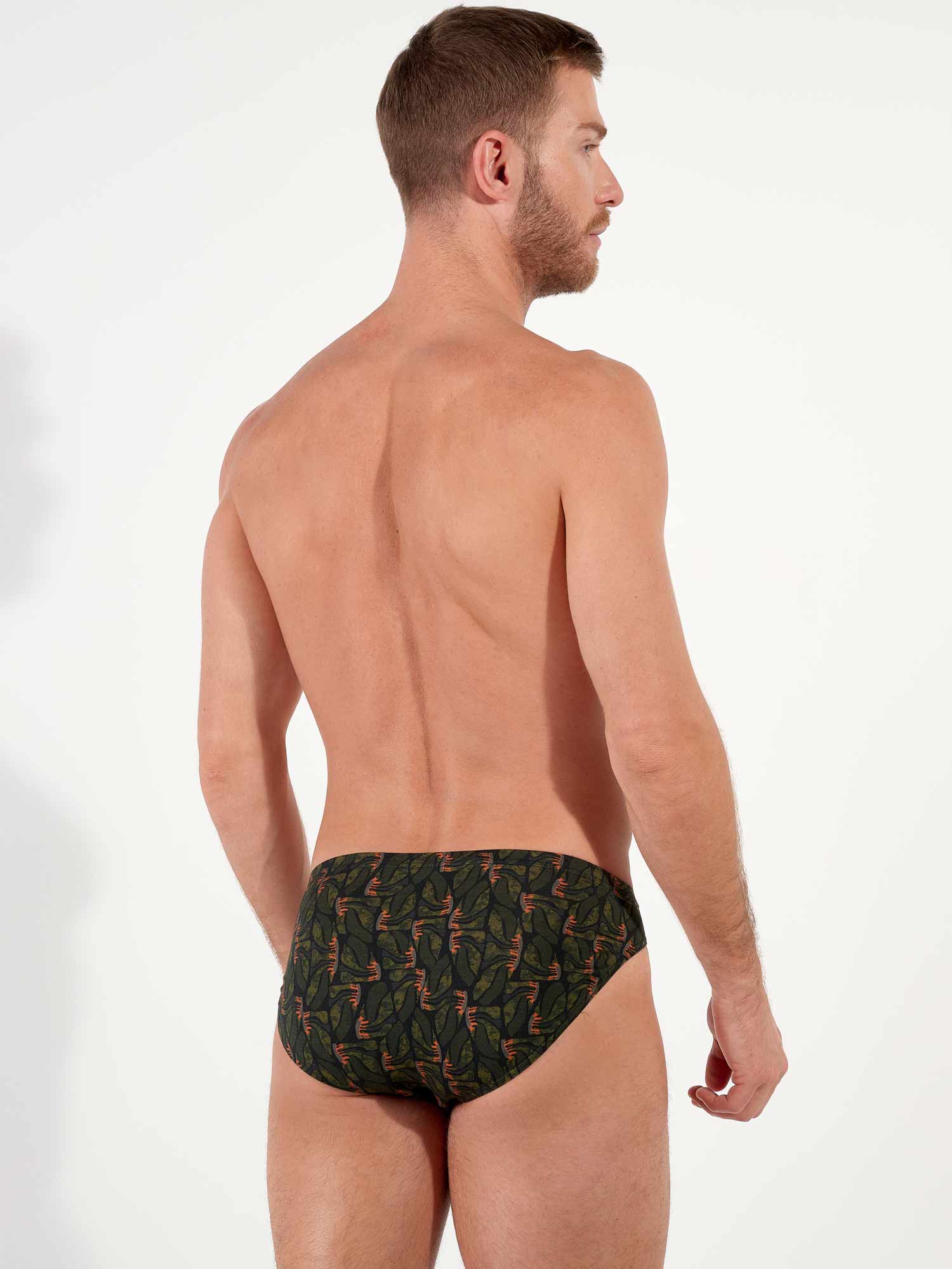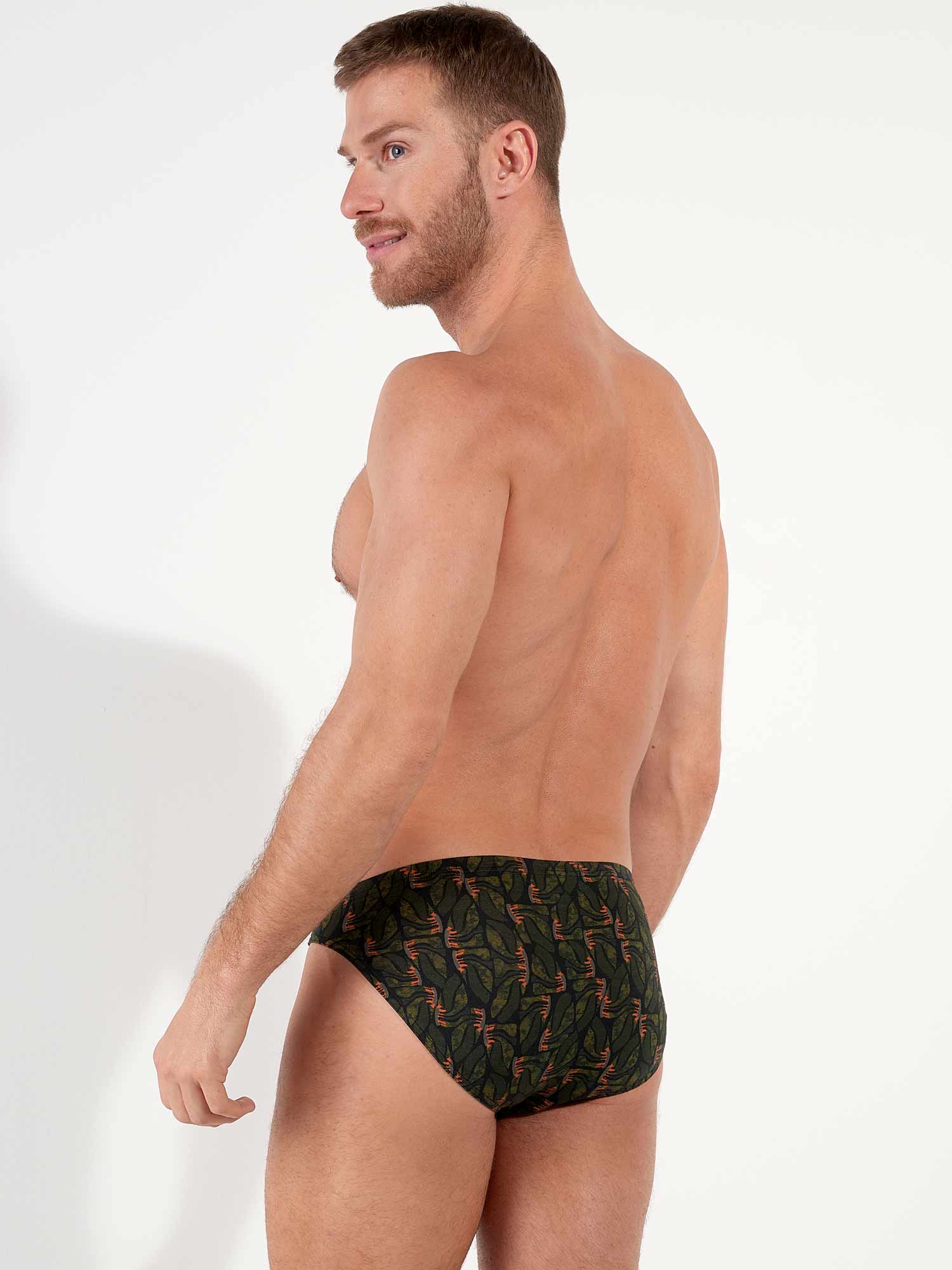 Khaki- og orange plantemotiver på sort baggrund giver Vizzavona – comfort micro briefs et moderne camouflagelook. Den bløde blanding af modal og bomuld former sig smukt mod huden, mens den fine benafslutning og indvendige støtte giver komfort hele dagen.