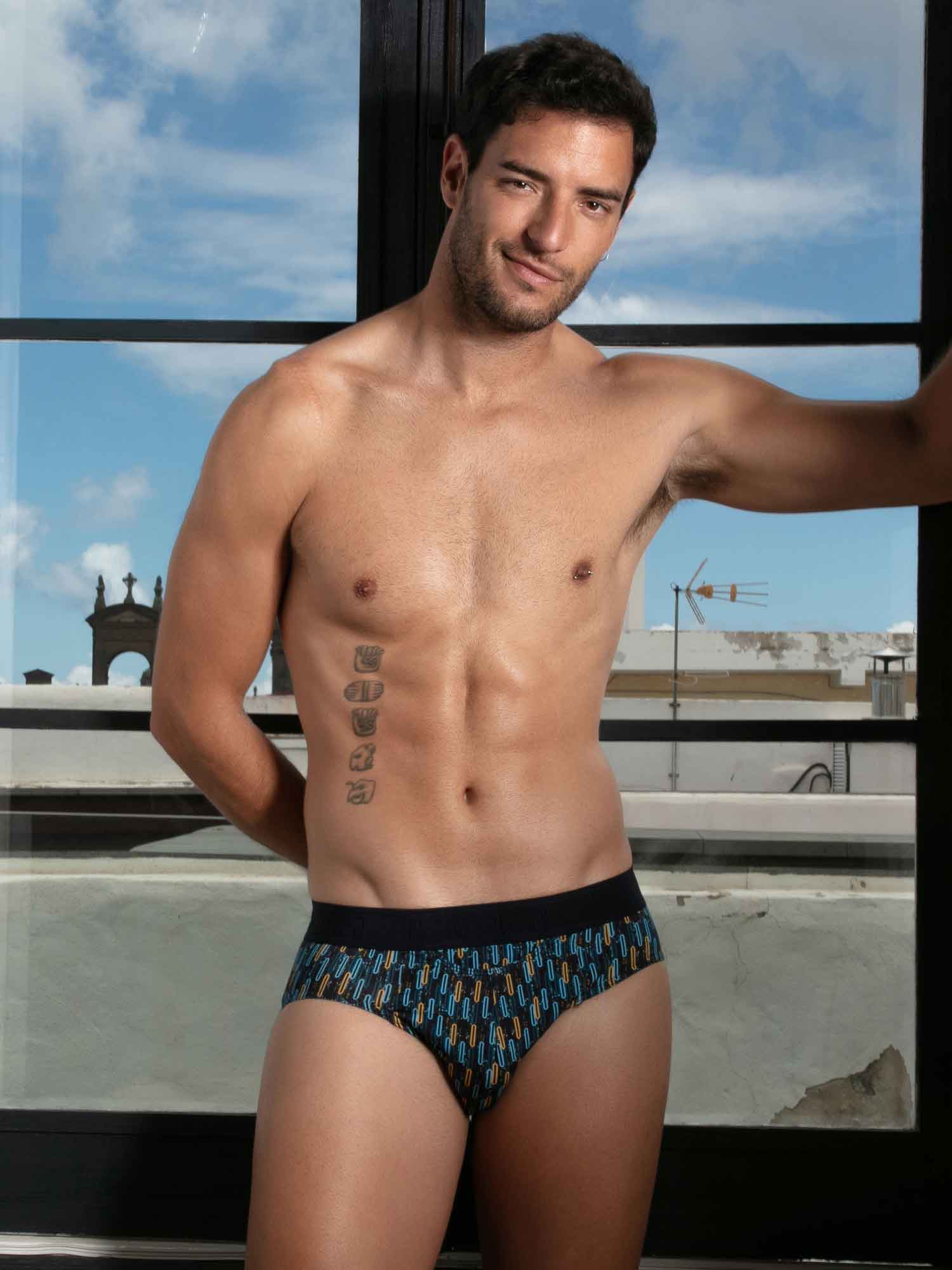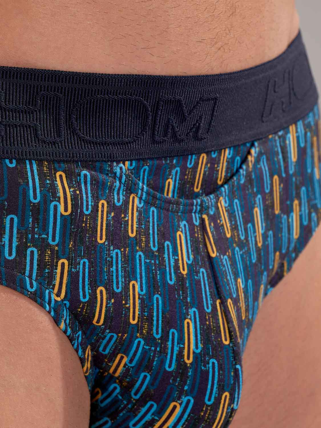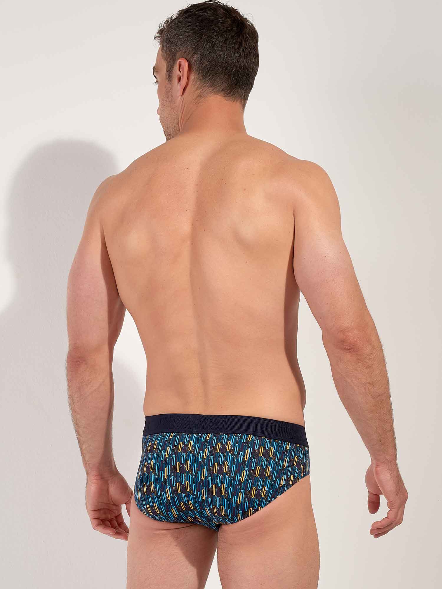 HOM Westgate mini briefs HO1 giver en skarp, tætsiddende silhuet med den samme retro energi. De kontrastfyldte ovale motiver i blå og gul på en navy baggrund trækker på dynamikken i 50ernes geometriske kunst, inspireret af Las Vegas’ visuelle audacity. Den premium blanding af bomuld, modal og elastan føles ekstra blød og fleksibel og er samtidig slidstærk til hverdagsbrug. Den patenterede HO1 vandrette åbning, også kendt som den vandrette fly, giver ergonomisk komfort og nem adgang for både højre- og venstrehåndede. En diskret elastisk forstærkning foran sikrer en naturlig, præcis pasform, mens den lette voile finish ved benåbningen holder linjerne rene og raffinerede under tøjet. En selvsikker essential med umiskendelig HOM stil.