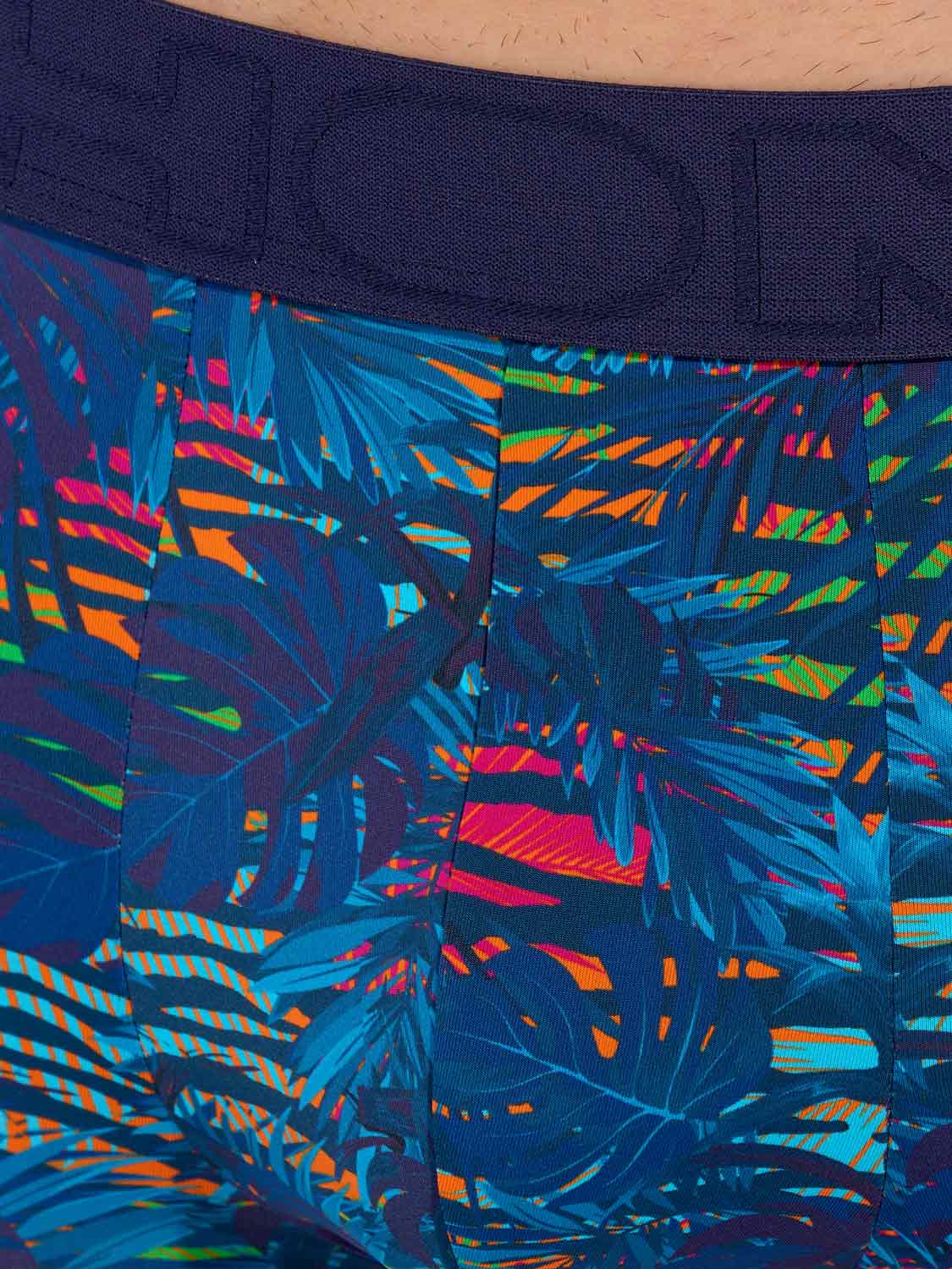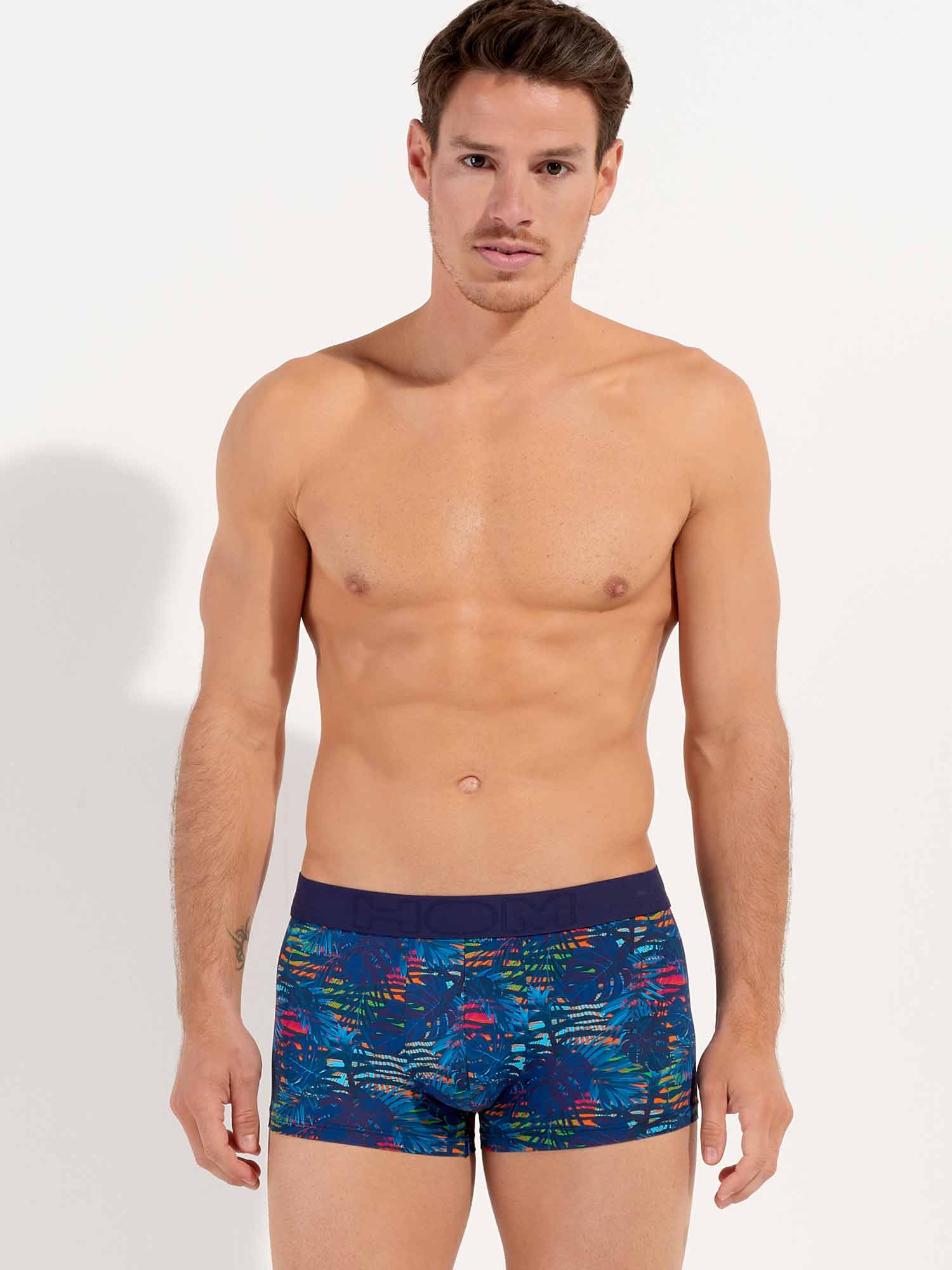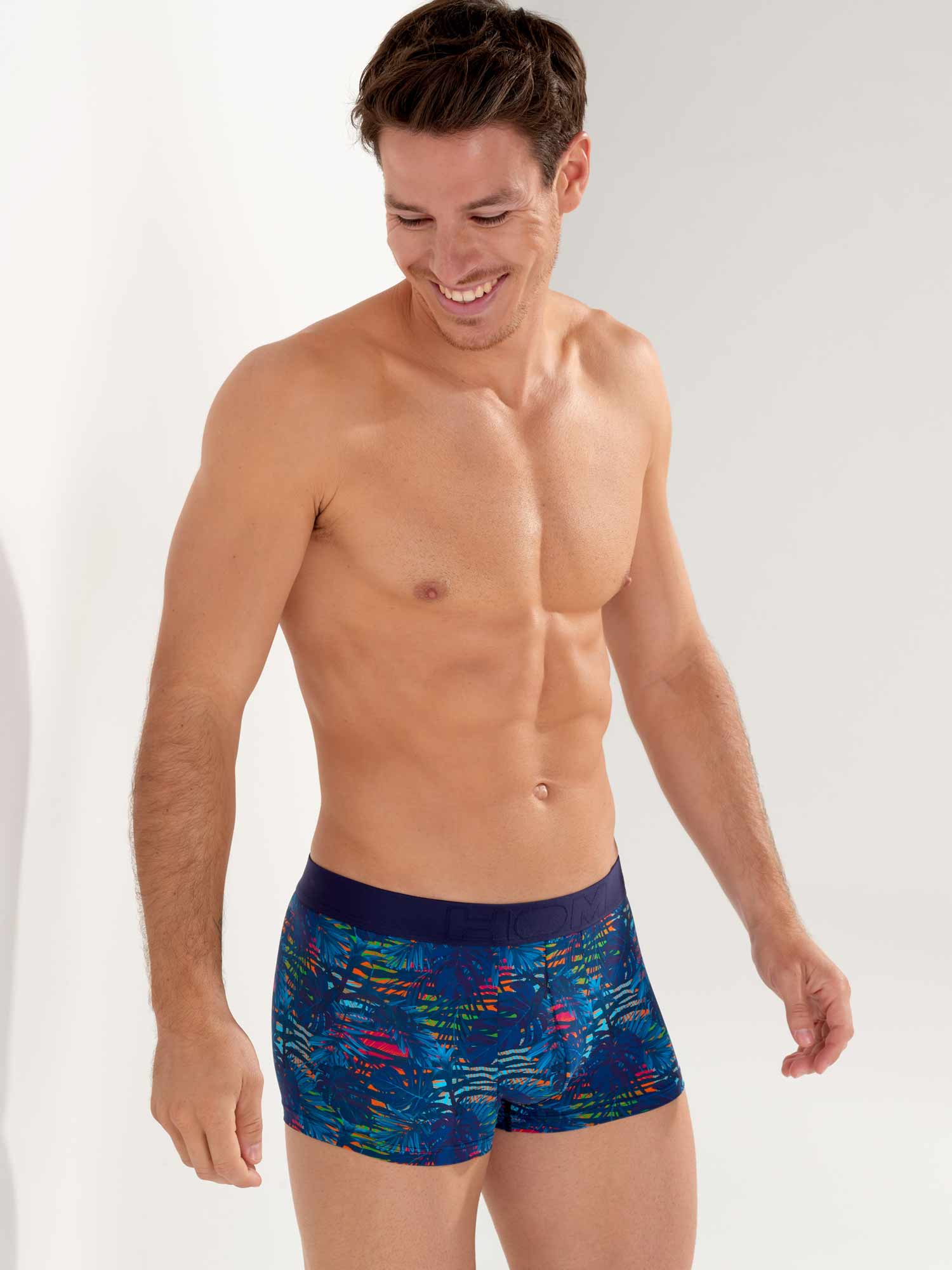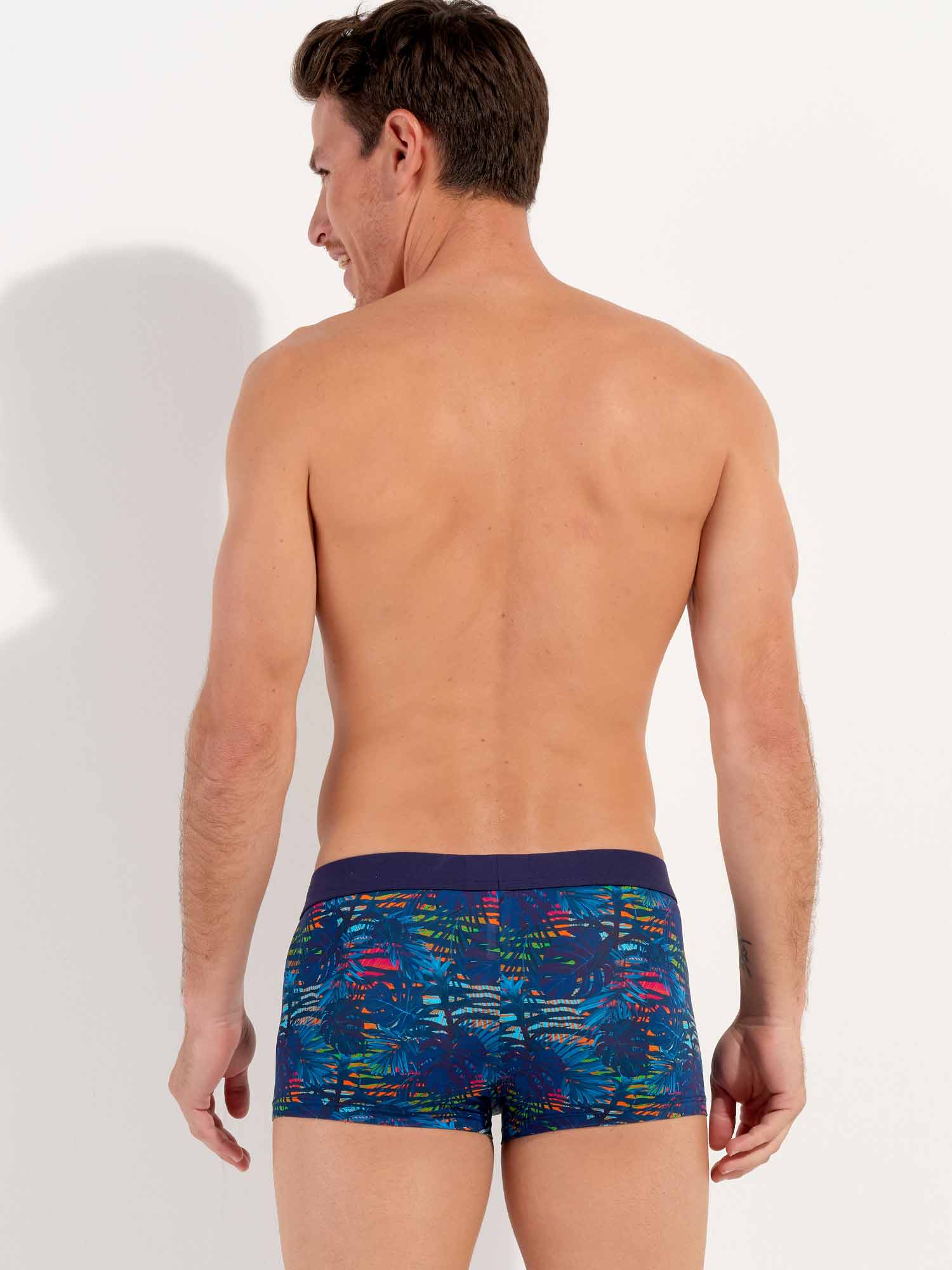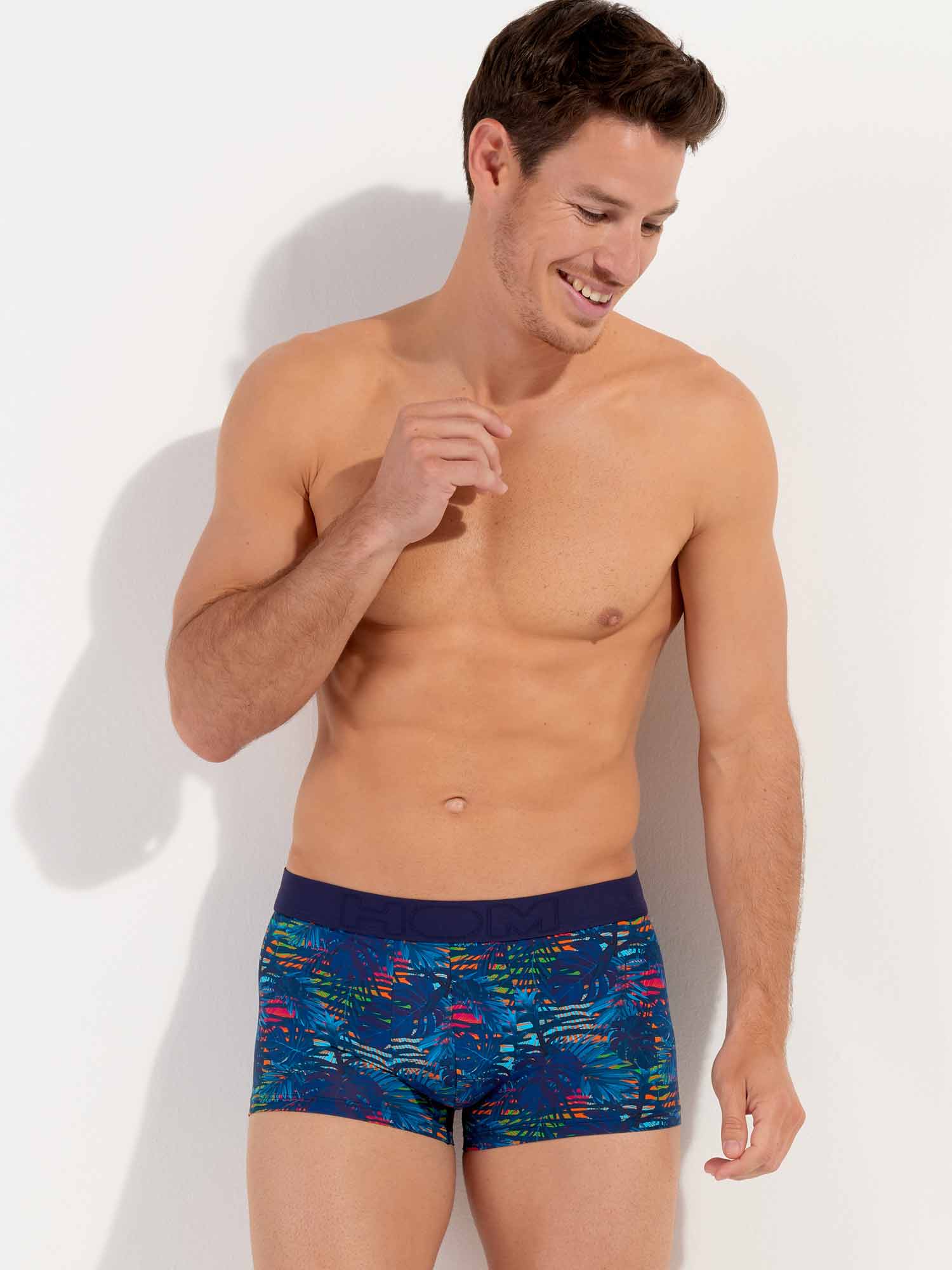 Dreamland - Trunk er lavet af et behageligt mikrofiberstof. Dreamland-designet har et mørkeblåt tropisk mønster på en farverig, camouflage-lignende blomsterbaggrund. Det elastiske taljebånd i marineblåt er lavet af bomuld med HOM-logoet i tone-i-tone.