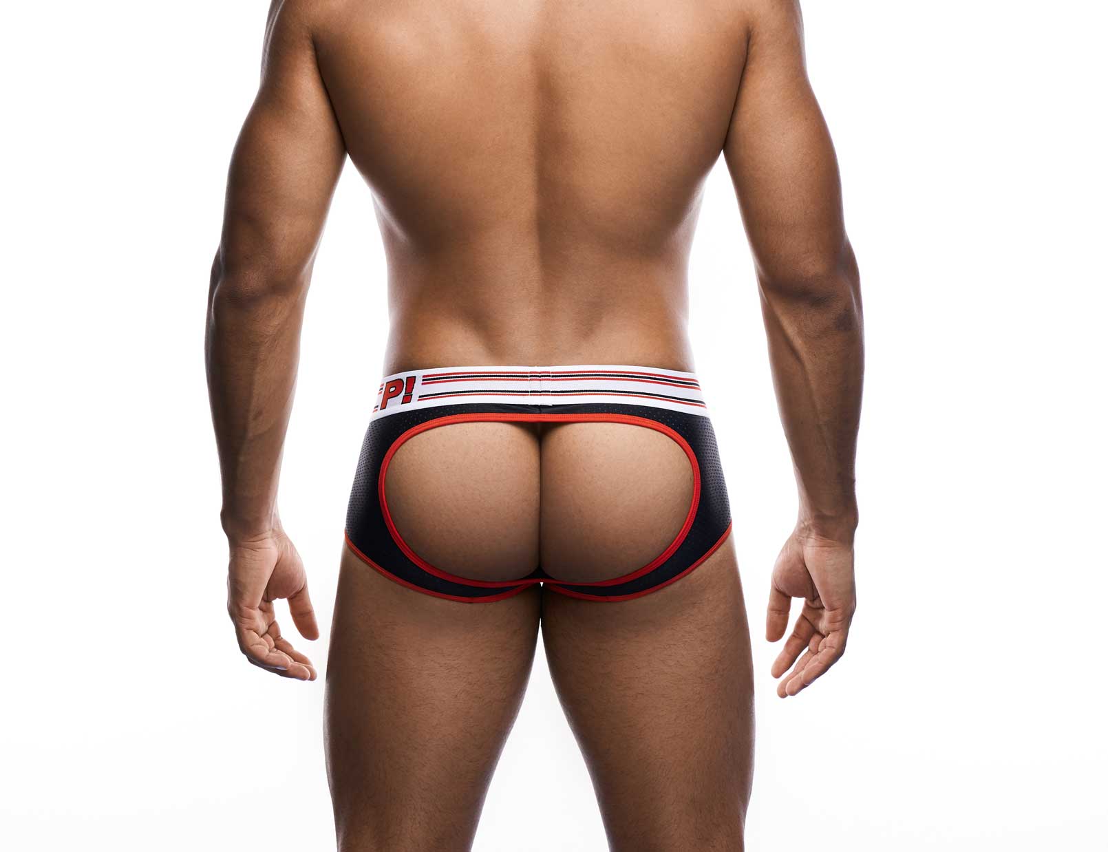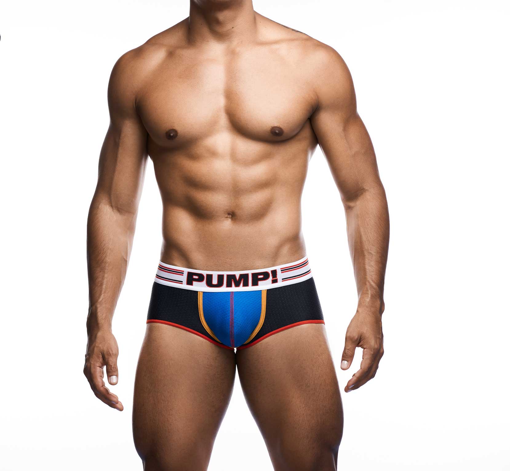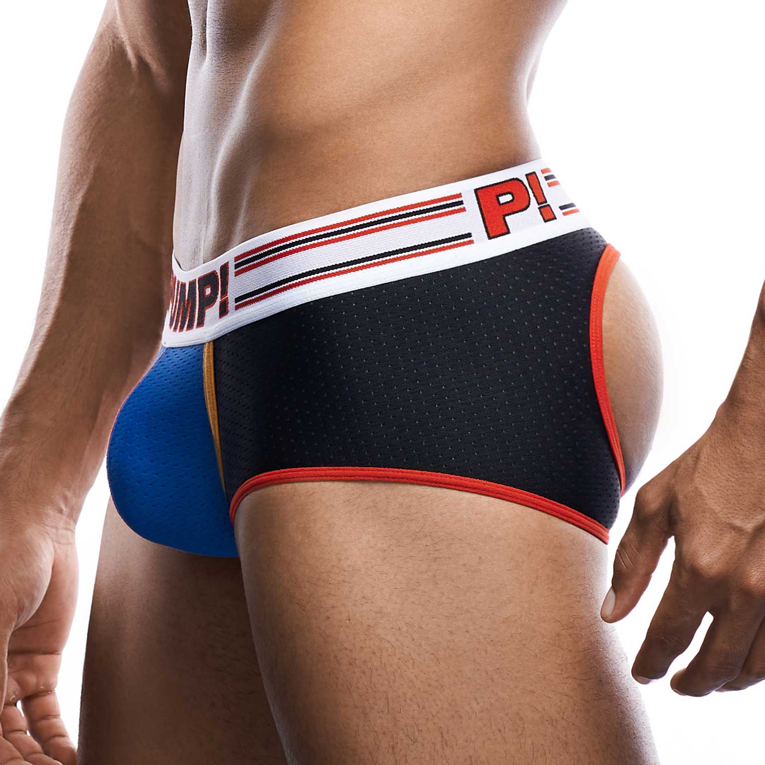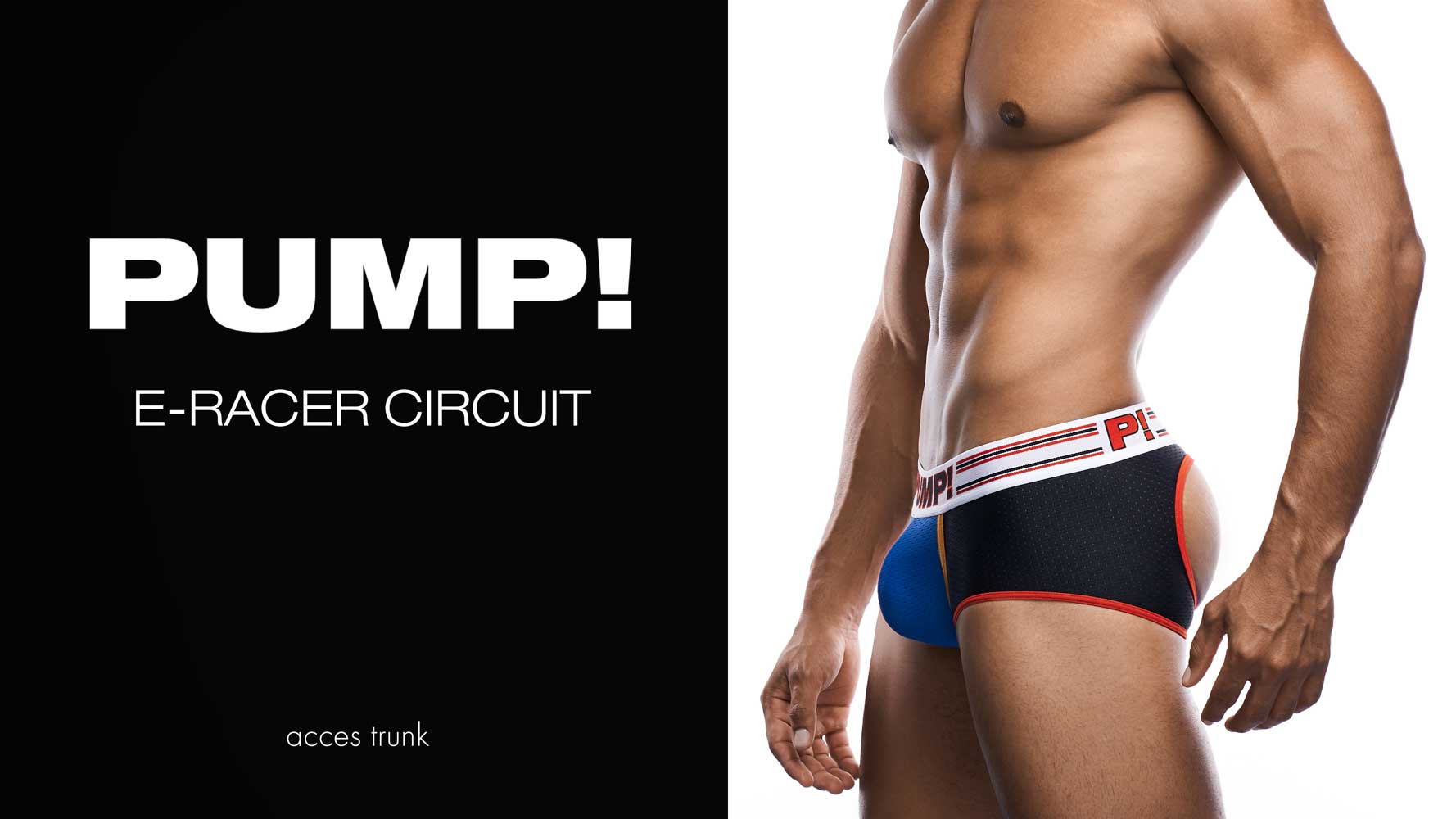 The Circuit - Access Trunk med en sort mesh krop og en blå mesh kop for et sporty look. Access trunk er færdig med røde og orange kanter og syninger, hvilket giver dig en spændt følelse, som om du var på banen. Den dristige taljebånd med racerløbstriber kaster dig i overdrive. Som om det ikke var nok til at få folk til at stoppe og lægge mærke til dig! Bagsiden er åben, og balderne støttes med elastik, en trunk med fornøjelsen af en jockstrap.