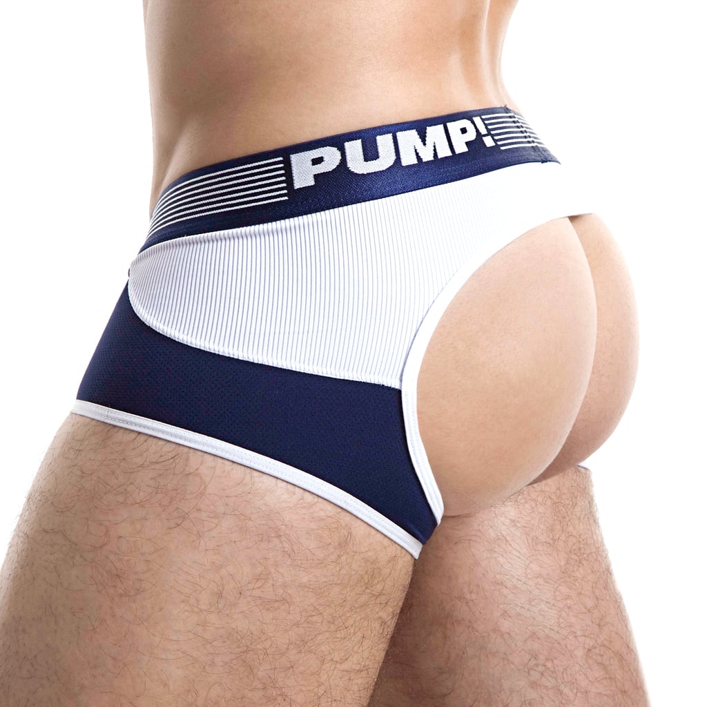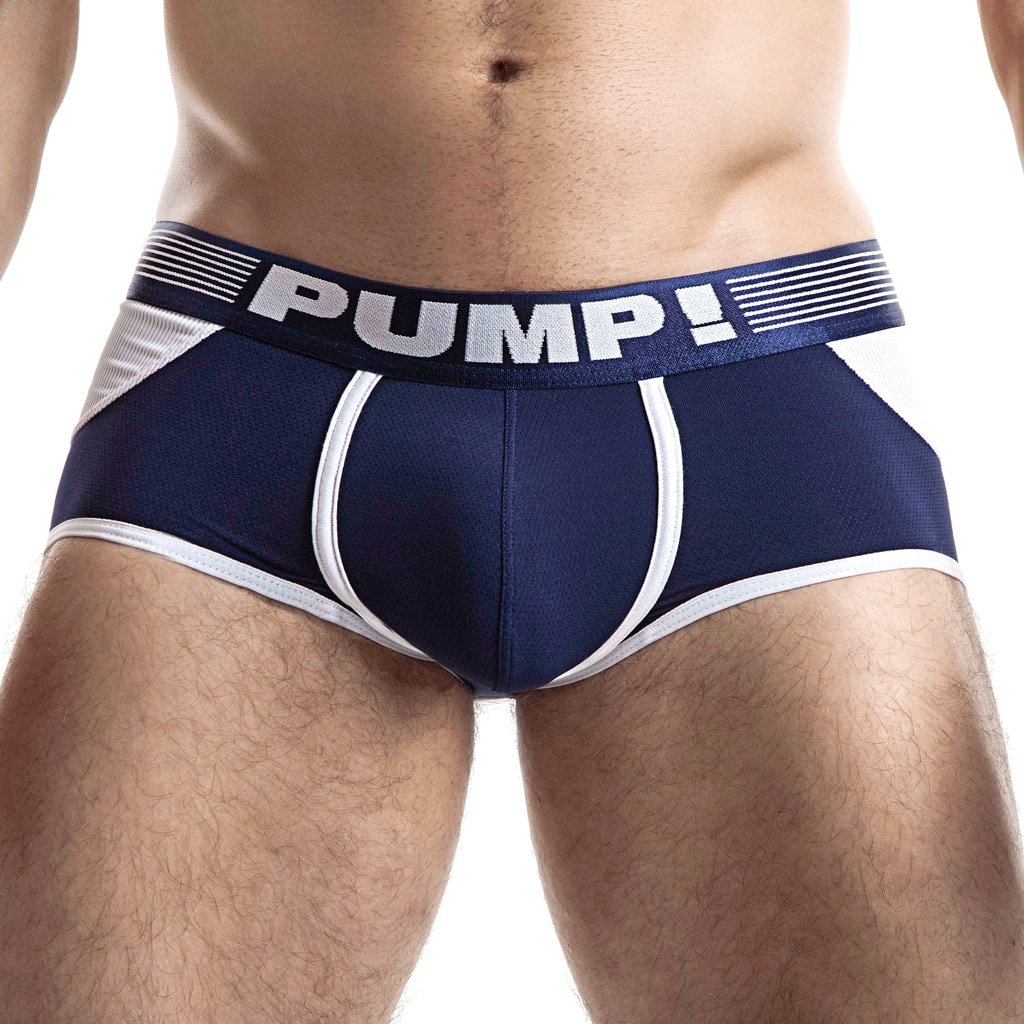 The Navy Access Trunk fra PUMP! er en trunk med et backless design. Access trunk er legesyg, dristig og giver dig al den frihed, du har brug for. Den er lavet af behagelig mikrofiber med en pung lavet af mesh. Bagsiden har en robust ribbet effekt. The Navy Access Trunk er udført i marineblå kombineret med hvid.