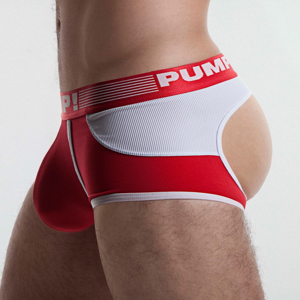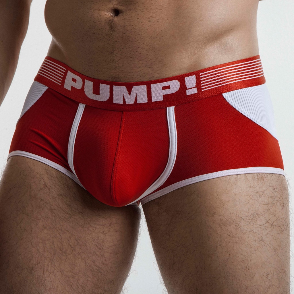 The Red Access Trunk fra PUMP! er en trunk med et backless design. Access trunk er legesyg, dristig og giver dig al den frihed, du har brug for. Den er lavet af behagelig mikrofiber med en pung lavet af mesh. Bagsiden har en robust ribbet effekt. The Red Access Trunk er udført i rød kombineret med hvid.
