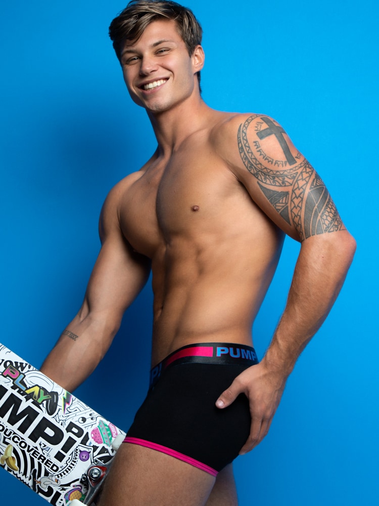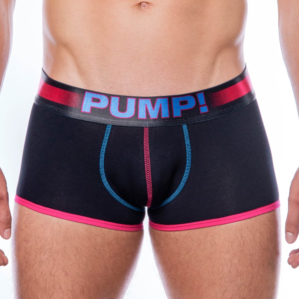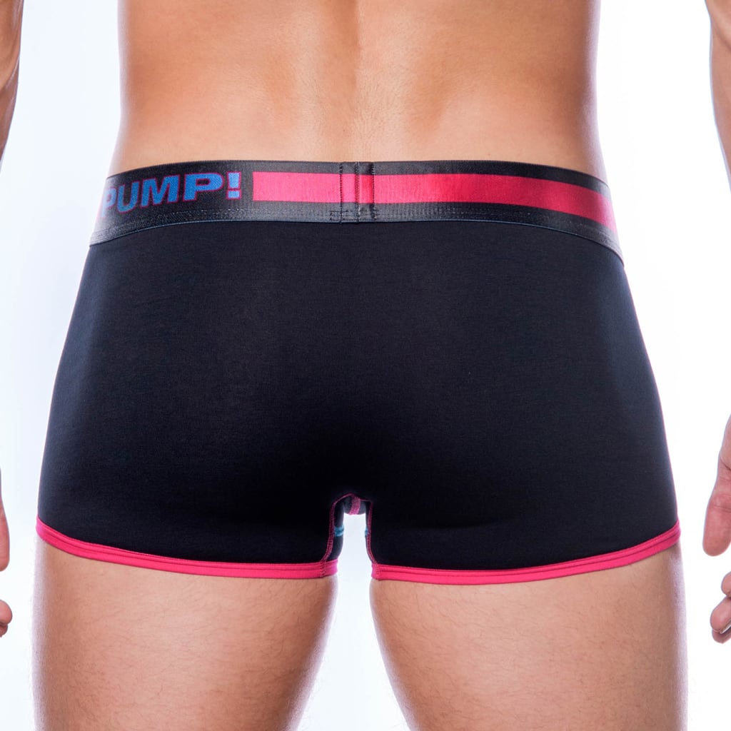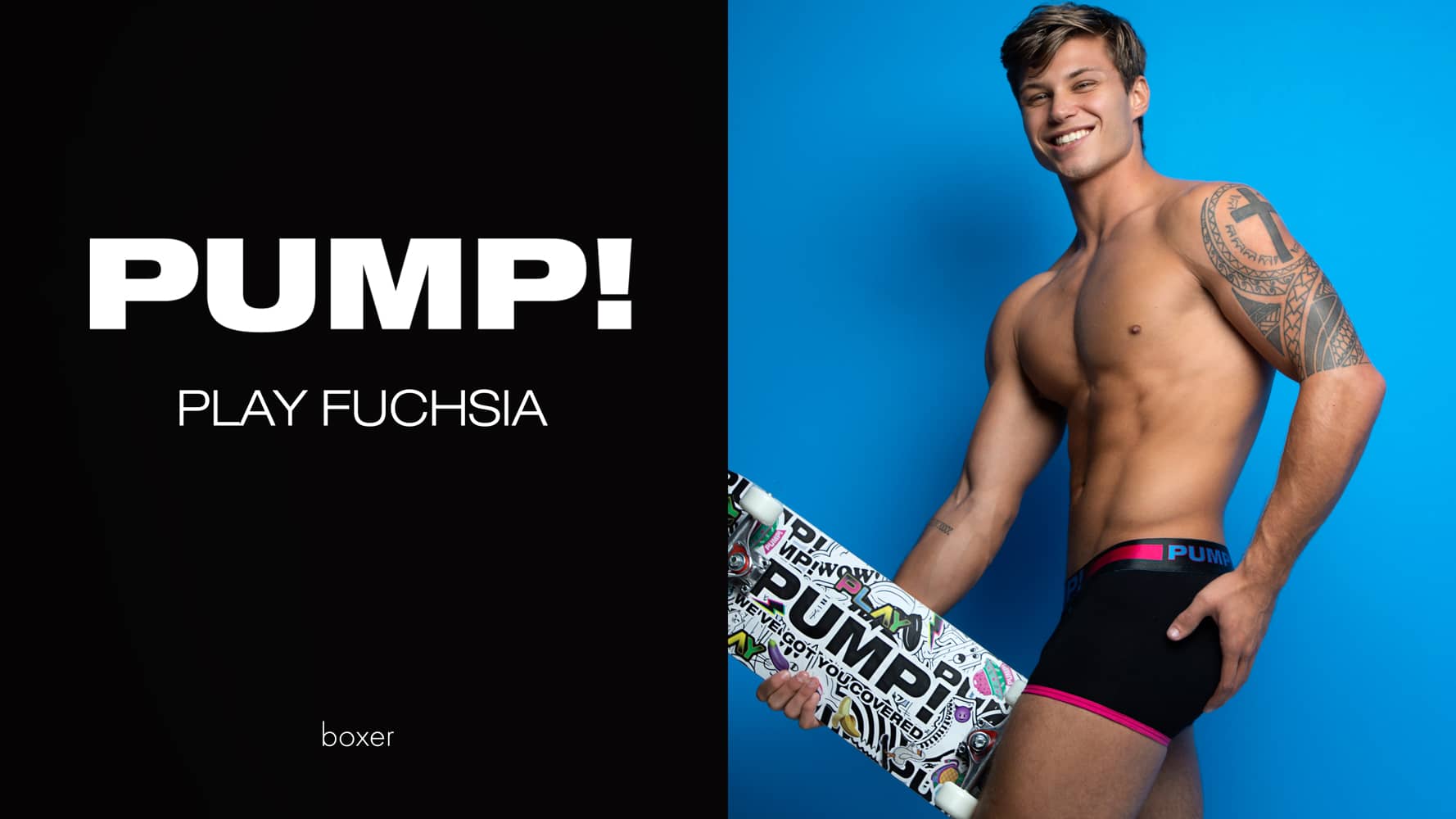 Den nye PLAY-serie fra PUMP! Underwear. Boksershortsene er legende designet med en 4,5 cm bred taljebånd. Boksershortsene er lavet af strækbomuld for den perfekte pasform. Den fuchsiafarvede bokser har blå og fuchsiafarvede syninger og kantning.