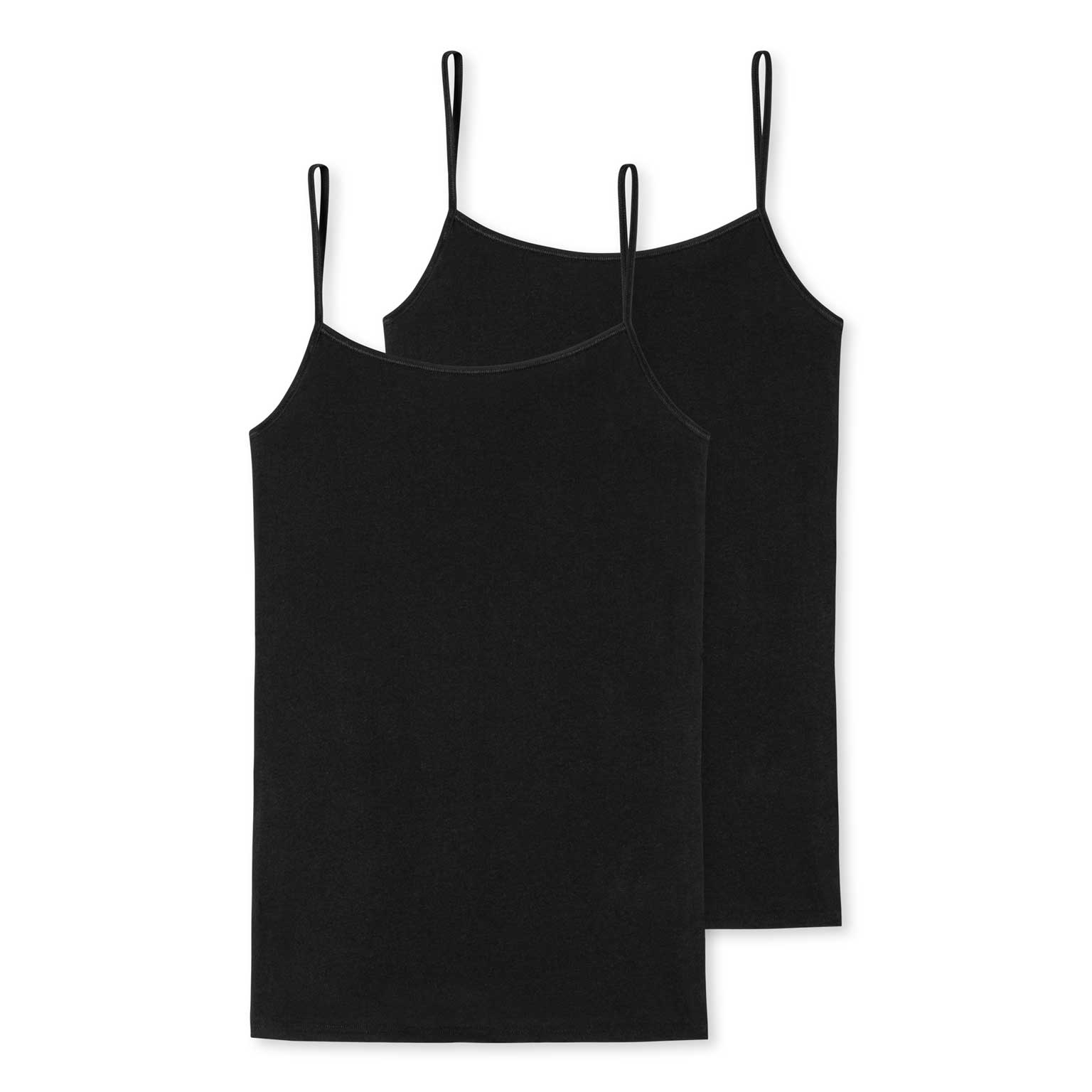 En værdipakke med 2 spaghettitoppe til kvinder fra den populære Schiesser "95/5" serie. Spaghettitoppene er lavet af silkeblød økologisk bomuld blandet med 5% elastan og strikket i en jersey, for en optimal pasform og den bedste bærekomfort. På grund af Schiessers særlige produktionsproces er elastanen i stoffet beskyttet, så du kan vaske toppene op til 60 grader uden at de mister deres pasform. Med disse spaghettitoppe køber du den kvalitet, du kan forvente fra Schiesser.