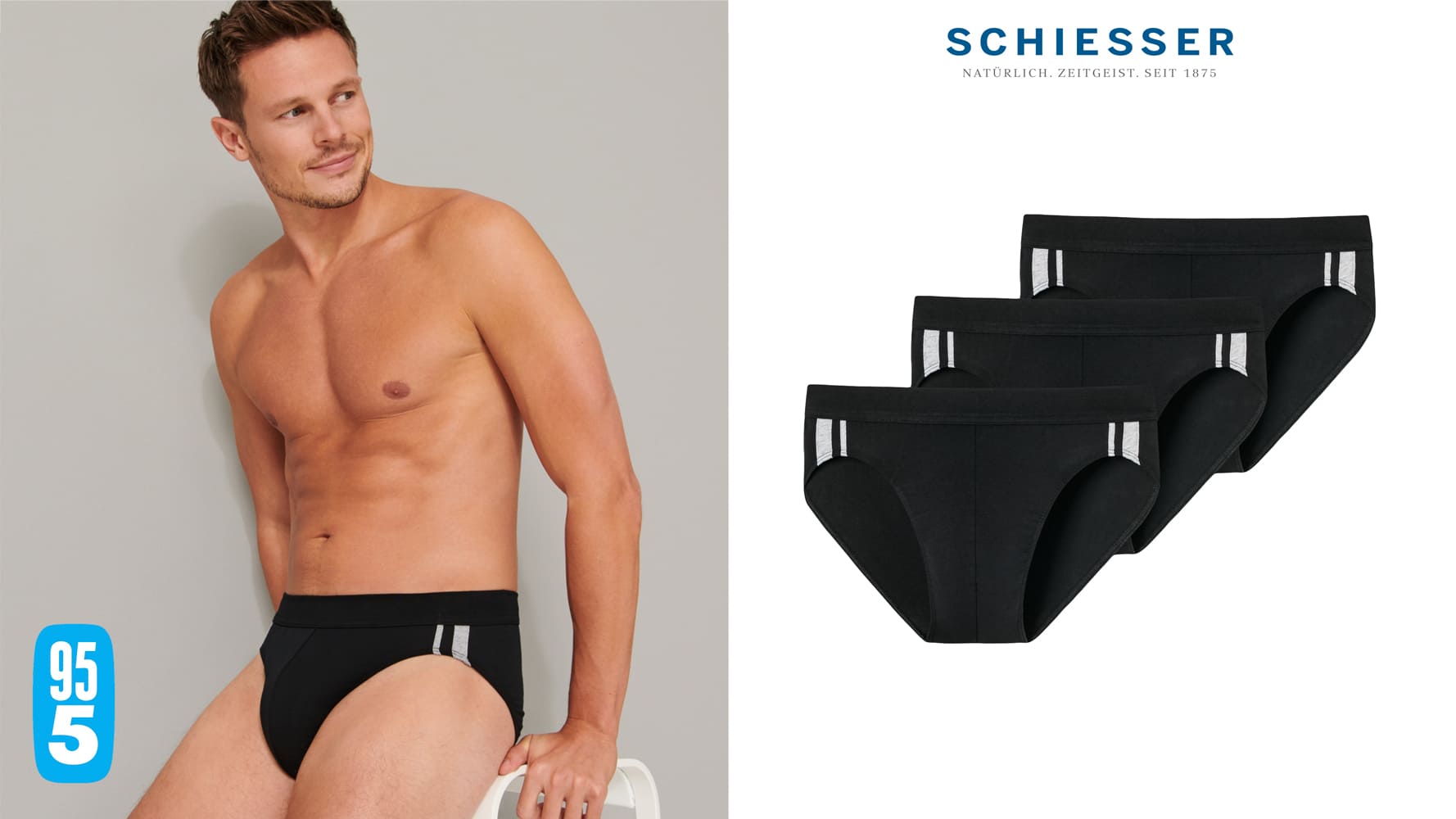 3 SCHIESSER Rio-slips til mænd fra den velkendte 95/5-serie, tilgængelig i en multi-pack. Herreslipsene fås i forskellige farver med kontrastlinjer på siderne. En blød linning sikrer den bedste bærekomfort. Rio-slip bæres på hofterne og har et højt skåret design. Lavet af økologisk bomuld i en behagelig elastisk jersey-kvalitet.