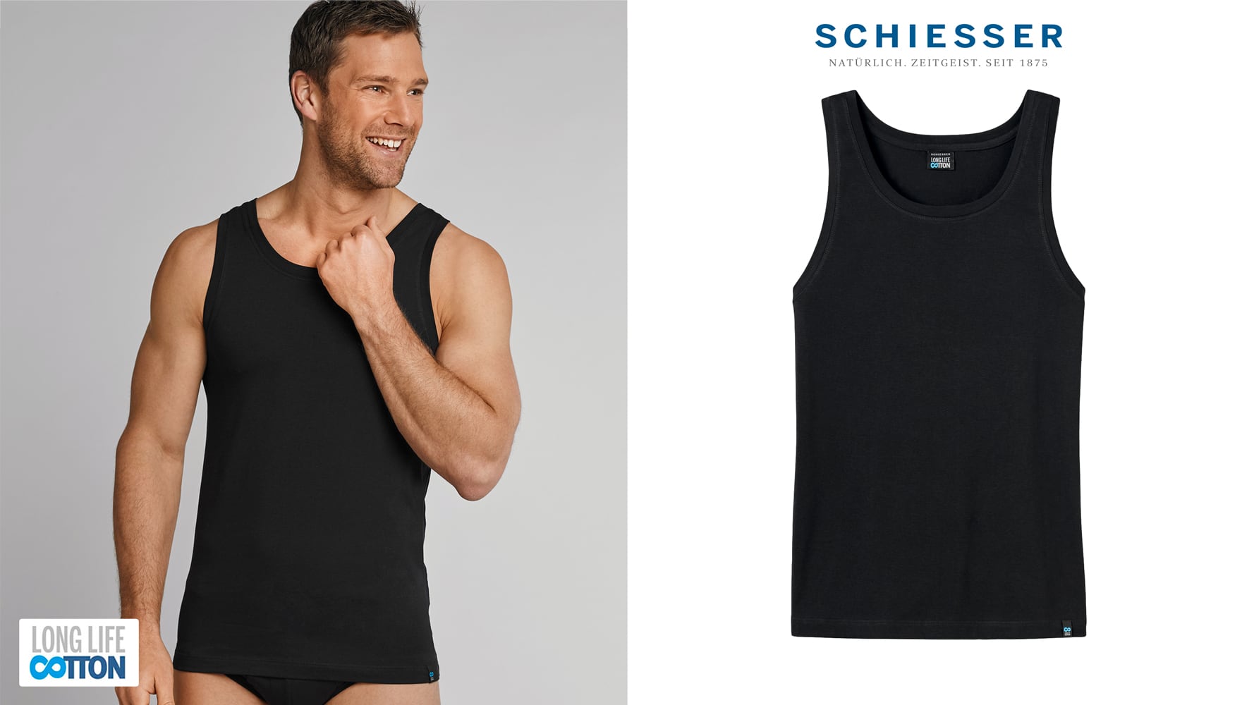 Dette herreundertrøje fra Long Life Cotton-serien fra SCHIESSER er specielt udviklet til manden, der elsker bomuld. Gennem en speciel forædlingsproces føles bomulden ikke kun usædvanlig blød mod huden, men den er også fnugfri og holder længere end almindelig bomuld, hvilket holder din undertrøje som ny, selv efter mange gange brug og vask! Med denne undertrøje køber du SCHIESSER undertøj i den bedste kvalitet, som SCHIESSER har at tilbyde!