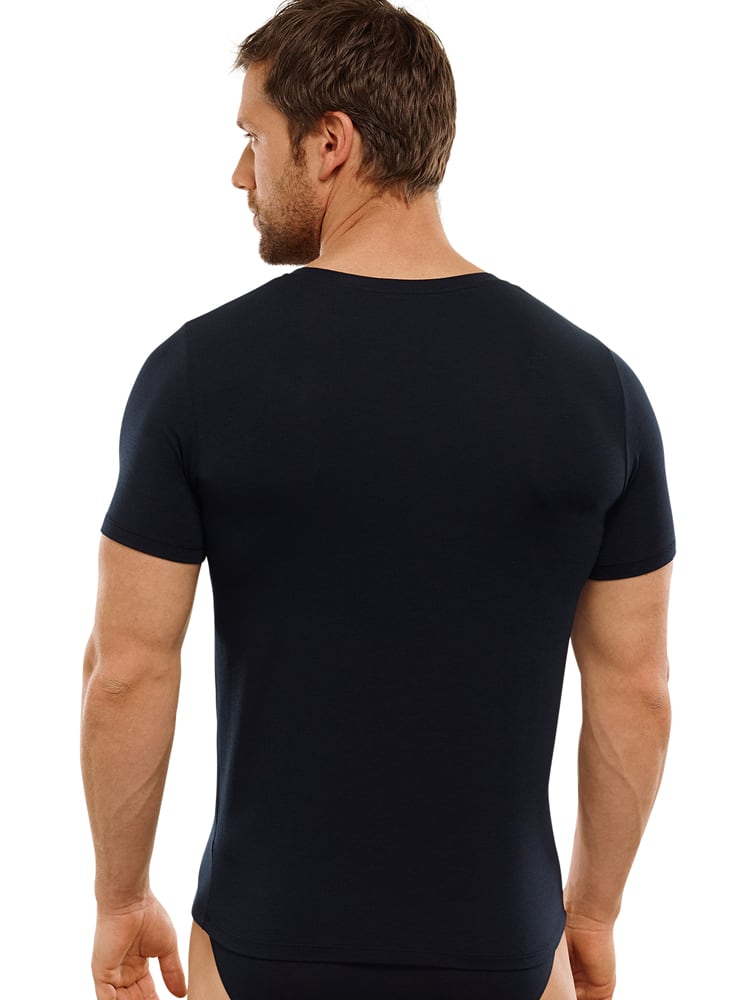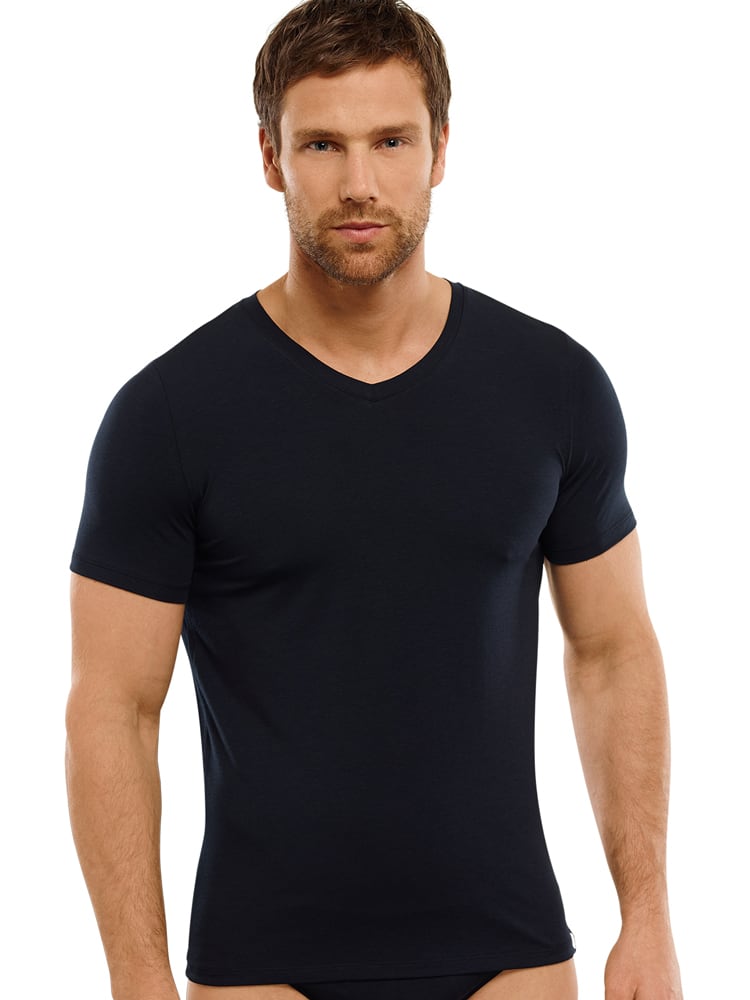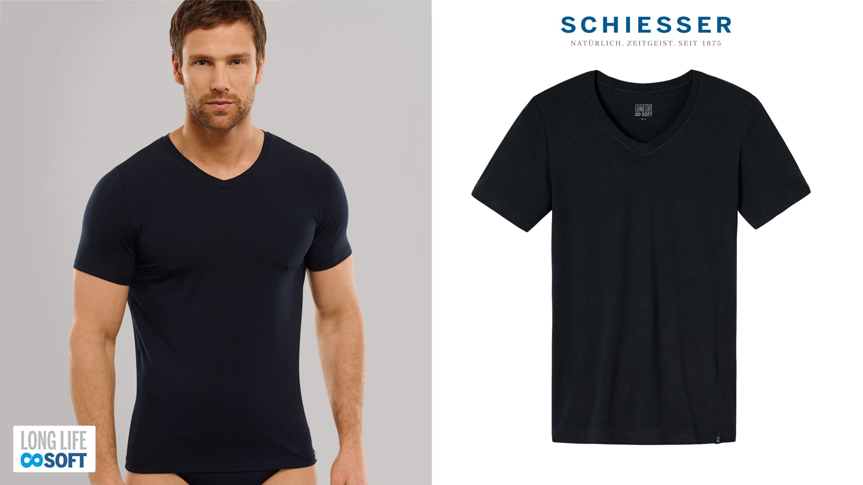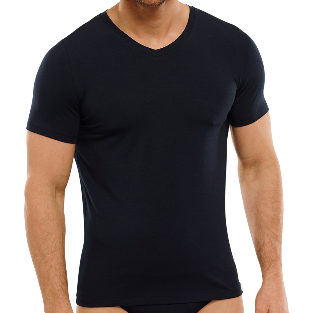 Denne T-shirt fra SCHIESSER "Long Life Soft" serien er præcis, hvad mænd, der værdsætter innovativt materiale med lav pilling og perfekt pasform, leder efter. Den højkvalitets, elastiske single jersey føles behageligt glat og blød mod huden, og takket være en afbalanceret mikromodal blanding sikrer den optimal fugtstyring. En meget holdbar V-hals skjorte, der blidt tilpasser sig kroppens bevægelser og giver maksimal komfort.