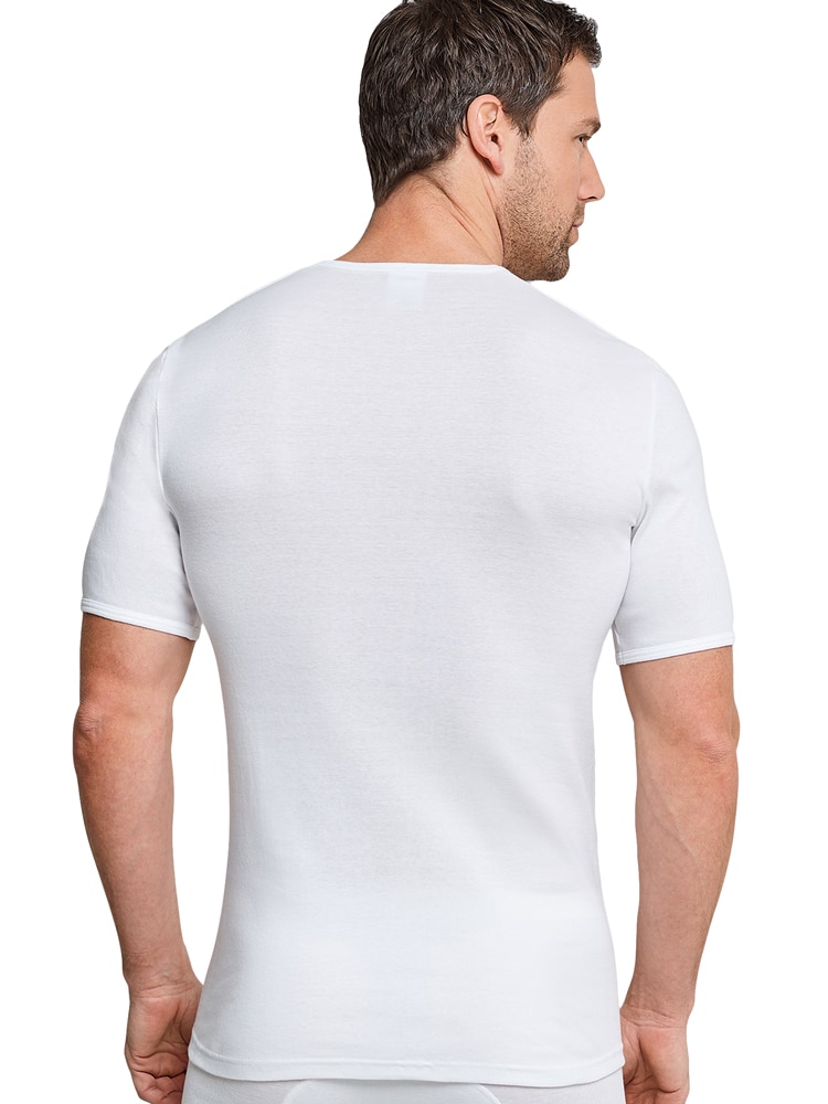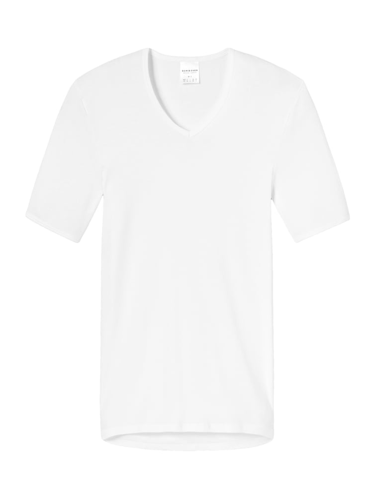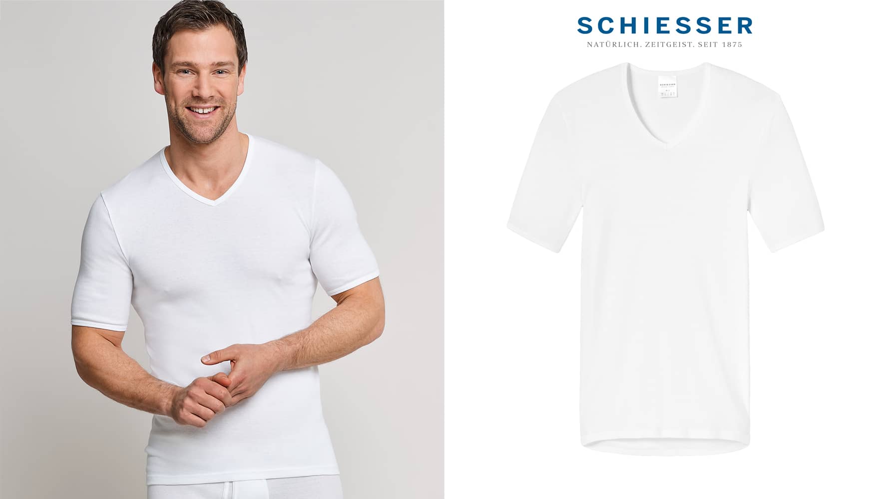 Klassikere på deres bedste: denne herreskjorte med korte ærmer og V-hals fra "Original Classics" serien fra SCHIESSER kombinerer materialer af høj kvalitet med en optimal pasform. Som navnet Original Feinripp antyder, er skjorten lavet af en fin rib af 100% superkæmmet bomuld, hvilket gør den særligt blød mod huden. Skjorten tilbyder optimal komfort, fordi den er cirkulærstrikket, så den har ingen generende sidesømme. En ægte SCHIESSER-klassiker i den bedste kvalitet!