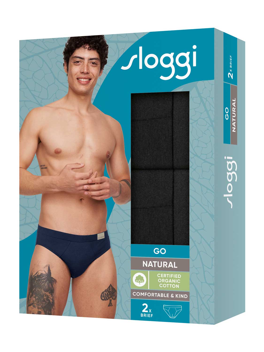 Med Go Natural Serien fra Sloggi bærer du økologisk bomuld, som er dyrket uden brug af pesticider. Go Natural er lavet af et behageligt 95/5 - stræk bomuld, så undertøjet passer perfekt til din krop. Go Natural kommer i en 2-pak med to ensfarvede briefs udført med en elastisk ensfarvet taljebånd med et lille Sloggi mærke broderet på forsiden til venstre.