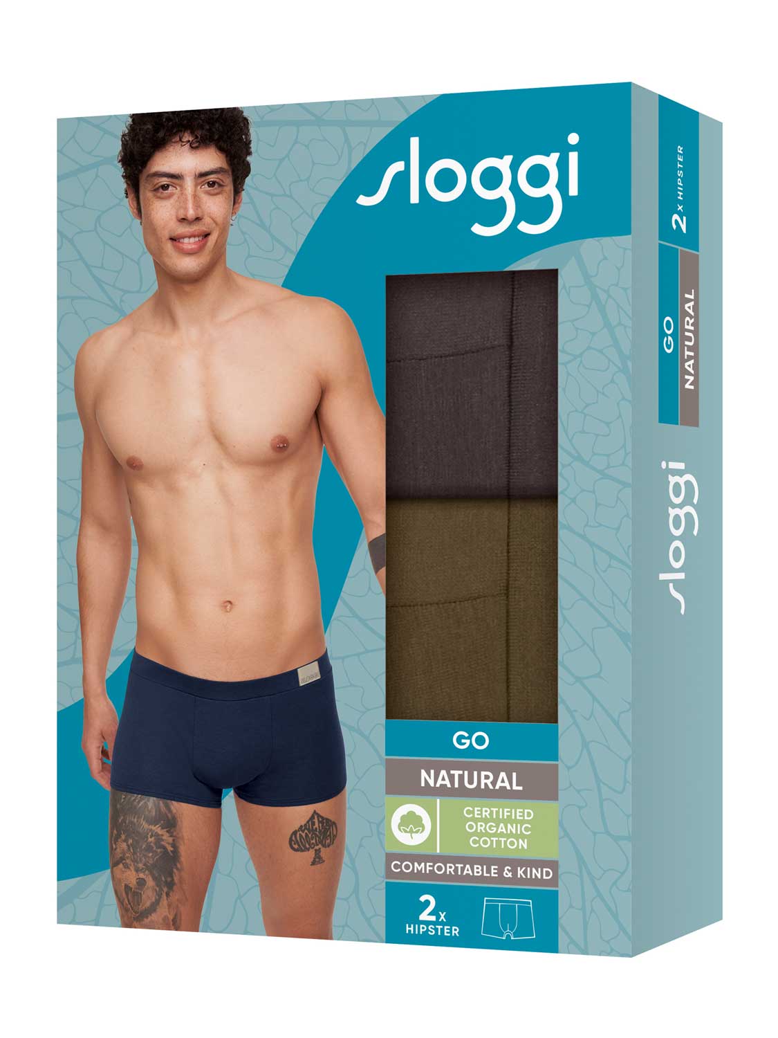 Med Go Natural Serien fra Sloggi bærer du økologisk bomuld, som er dyrket uden brug af pesticider. Go Natural er lavet af et behageligt 95/5 - stræk bomuld, så undertøjet passer perfekt til din krop. Go Natural kommer i en 2-pak med to ensfarvede hipsters udført med en elastisk ensfarvet taljebånd med et lille Sloggi mærke broderet på forsiden til venstre.