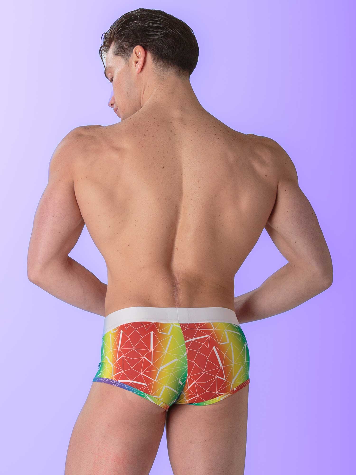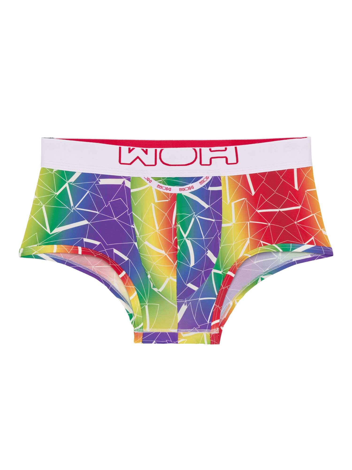 Trunks fra Sexy Fun-kollektionen har et levende regnbuemønster med geometriske detaljer, der tiltrækker opmærksomhed. Det bløde, elastiske stof giver maksimal komfort og en tætsiddende pasform. Med en sporty linning med WOH-logo og en støttende frontpouch er disse trunks skabt til selvsikre mænd, der elsker en sjov og dristig stil med ægte komfort.